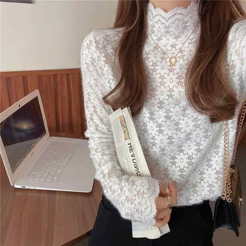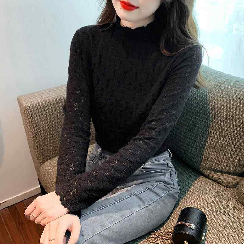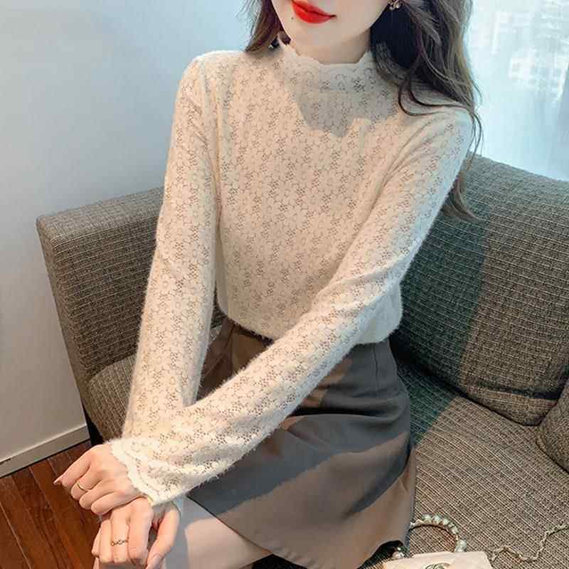 高领长袖 加绒蕾丝打底衫 洋气减龄内搭小衫 2025新款 1219e 女秋冬装