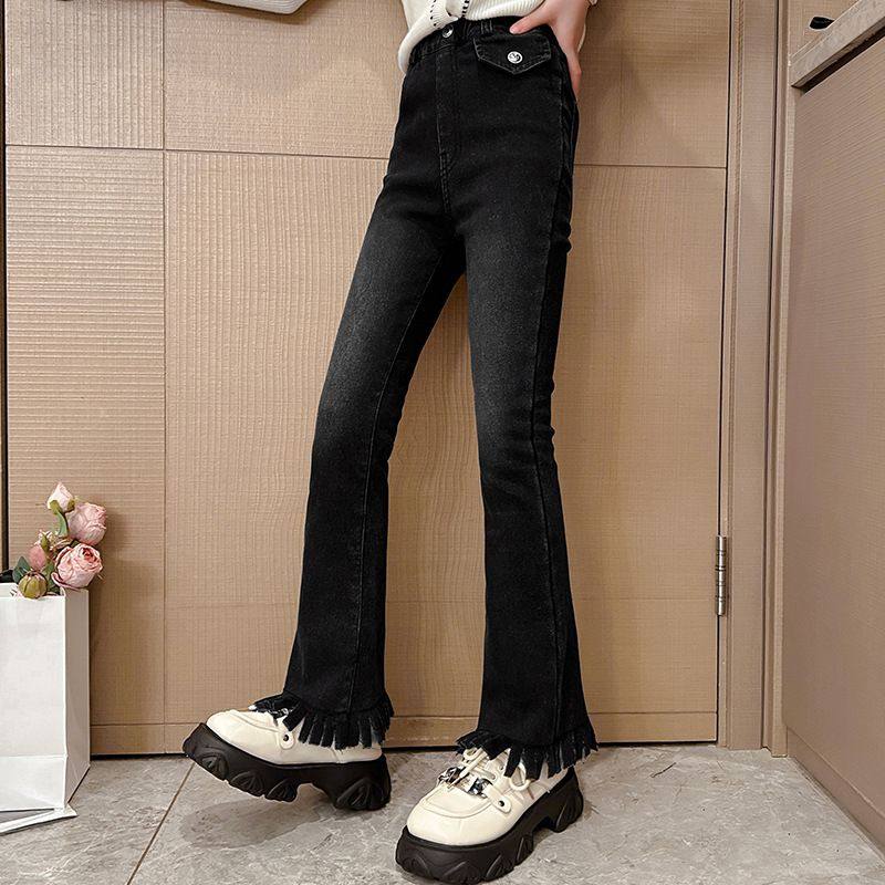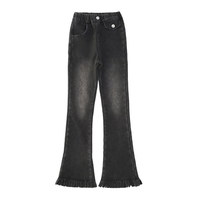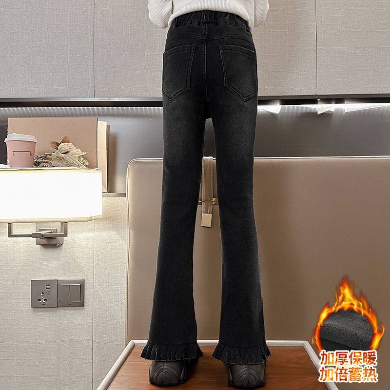 大童时髦喇叭裤 女童一体绒牛仔裤 长裤 秋冬儿童加绒保暖修身 潮 韩版