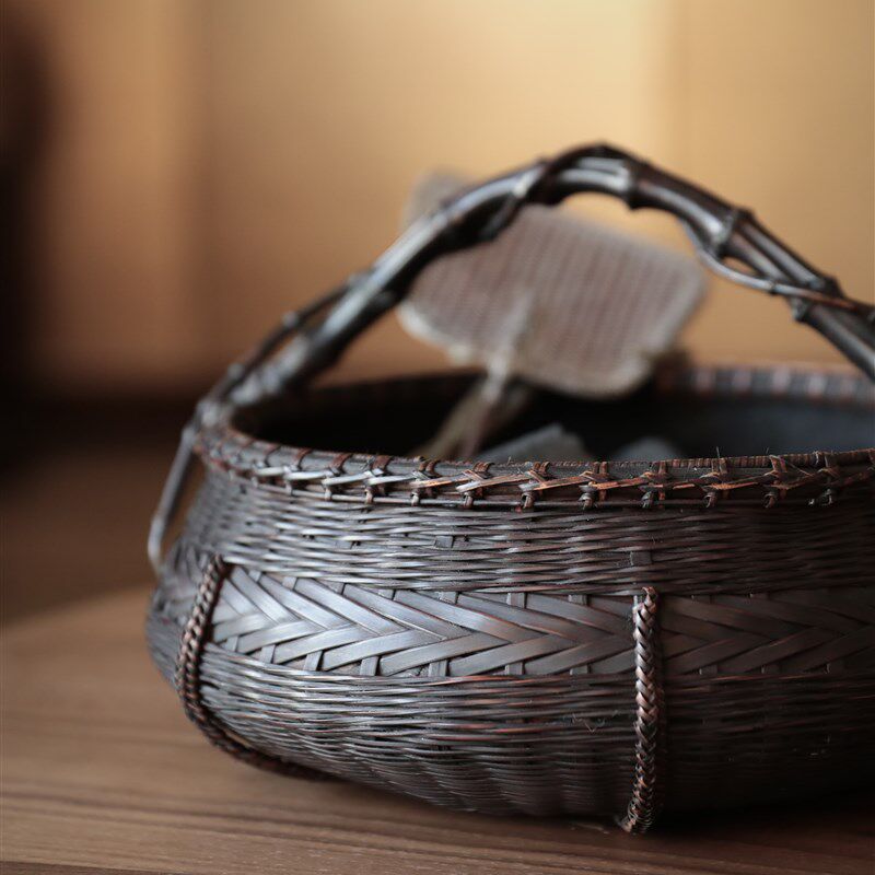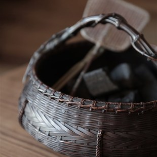奇竹斋手工竹编炭筐提篮炭钵炭篓茶室木炭收纳篮 不掉渣刷漆储存