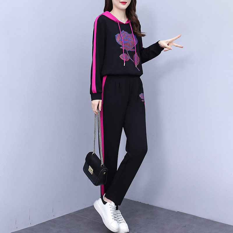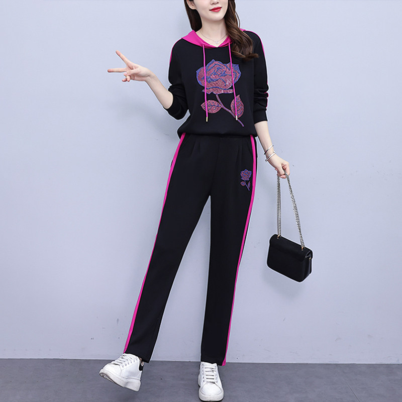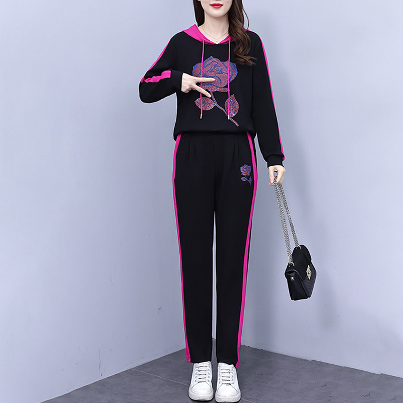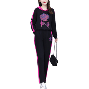 新款 2024春季 时尚 妈妈款 子两件套 大码 宽松显瘦连帽运动卫衣裤 女装