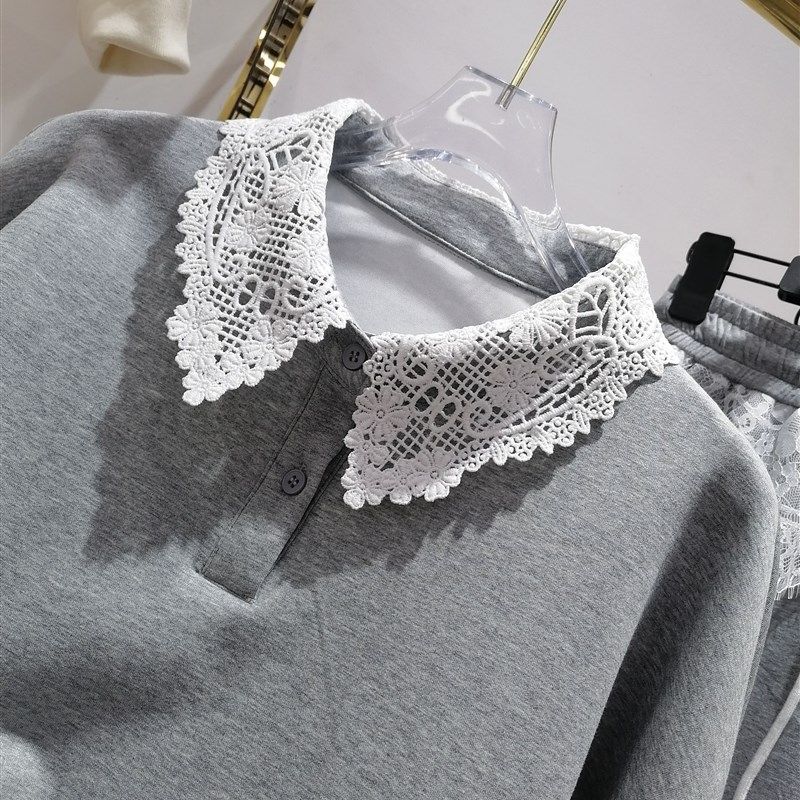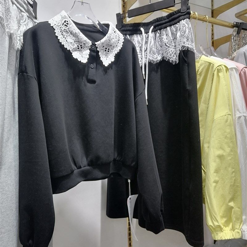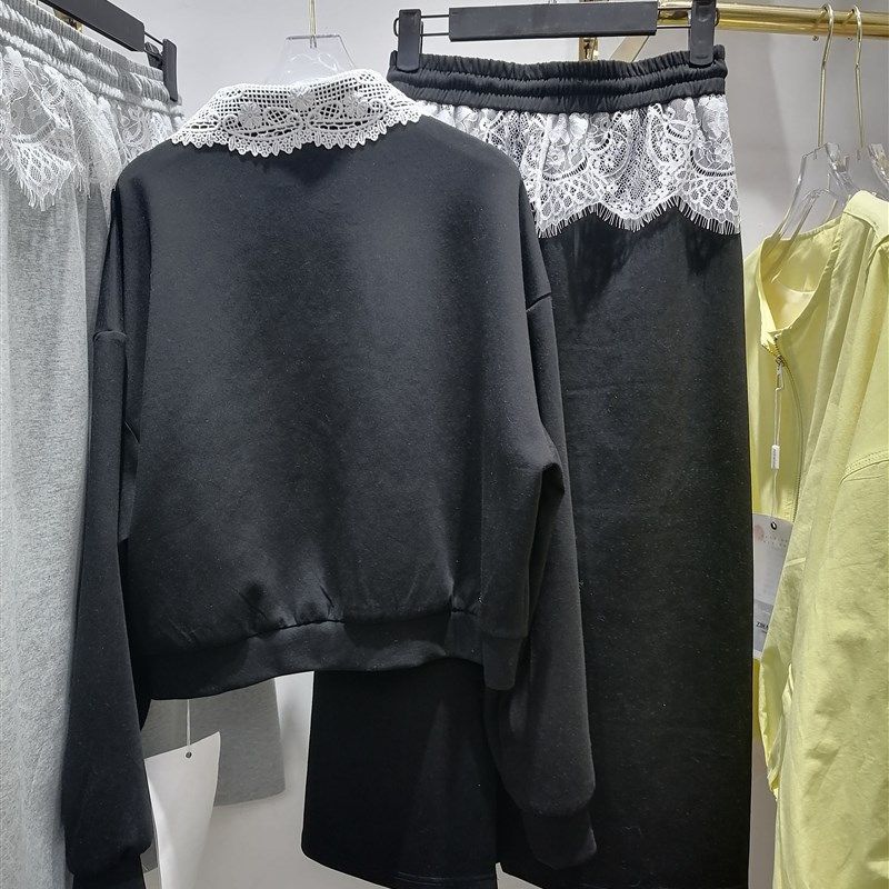 花边卫衣 拼蕾丝长袖 半身裙两件套裙子 慵懒风连衣裙套装 2025春季