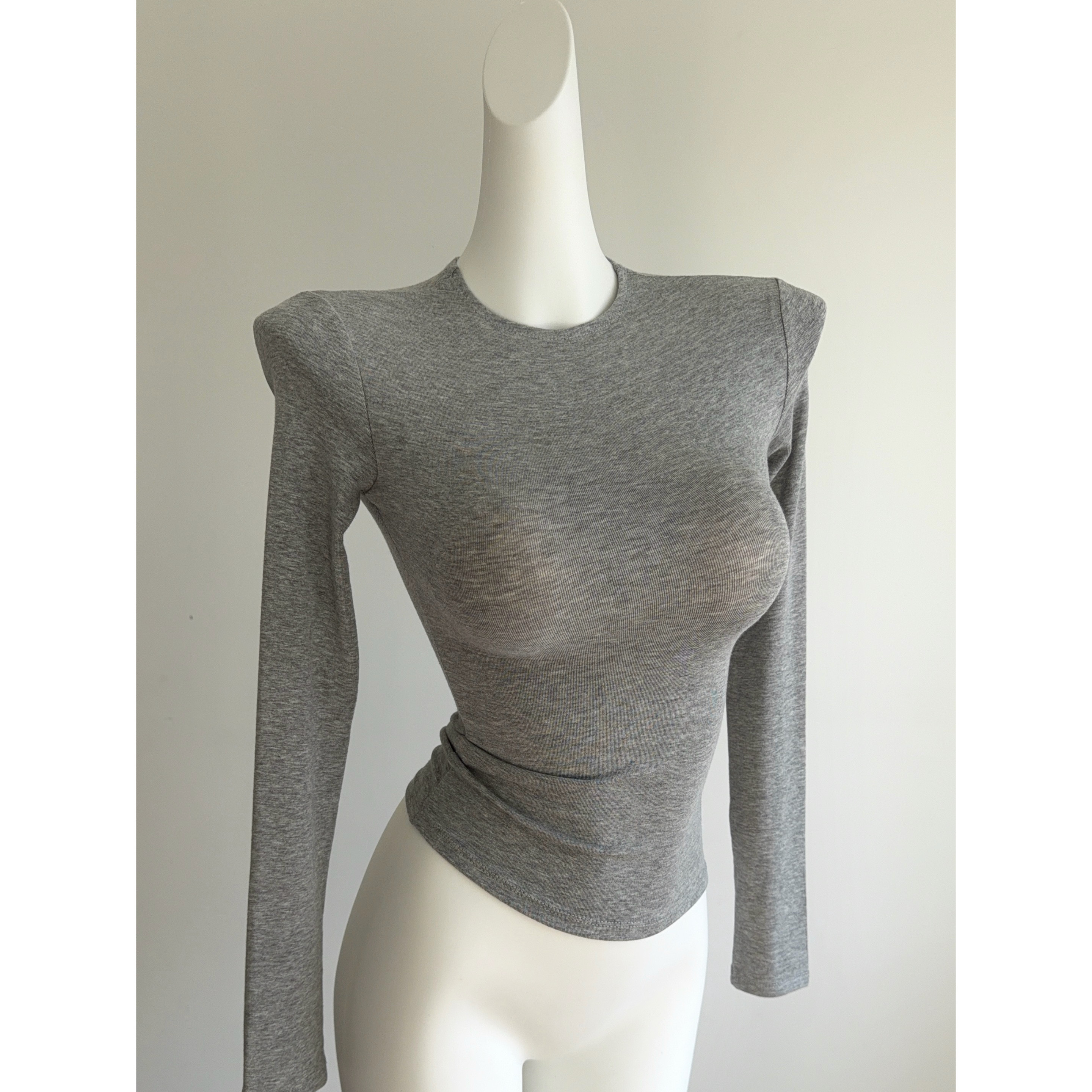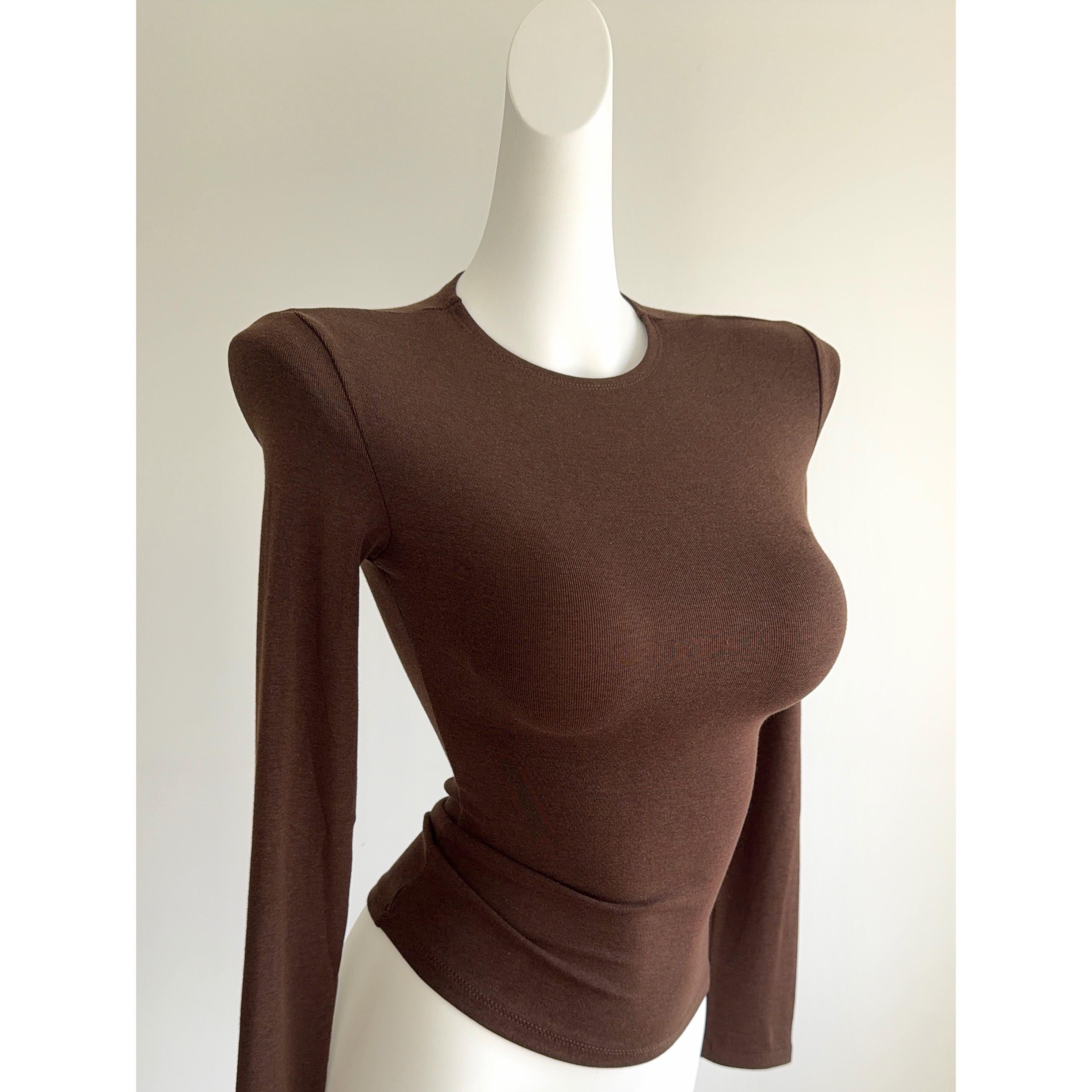 美式 打底衫 基础小圆领修身 显瘦内搭长袖 紧身T恤上衣 显胸直角肩