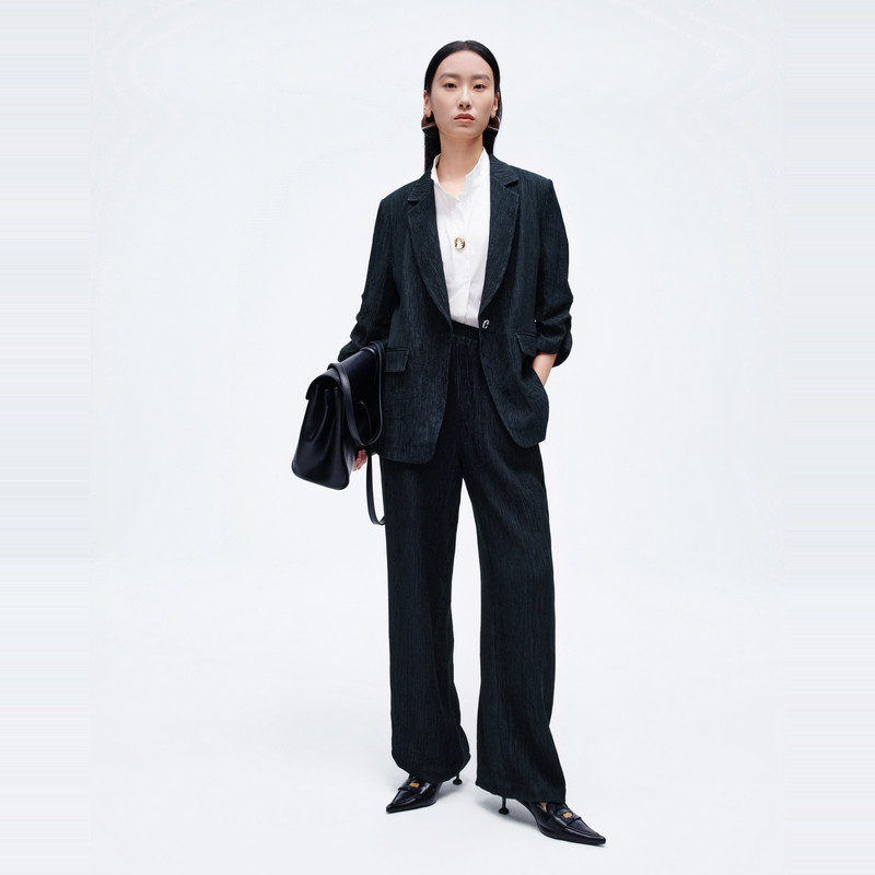 直筒裤 外套修身 套装 26年春季 NAERSI娜尔思抽褶长袖 新款 松弛感西装