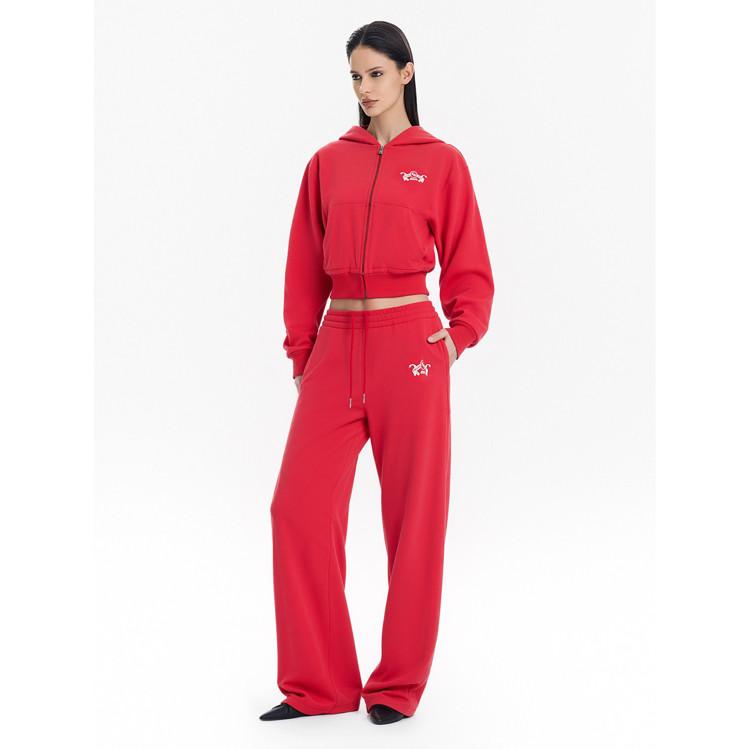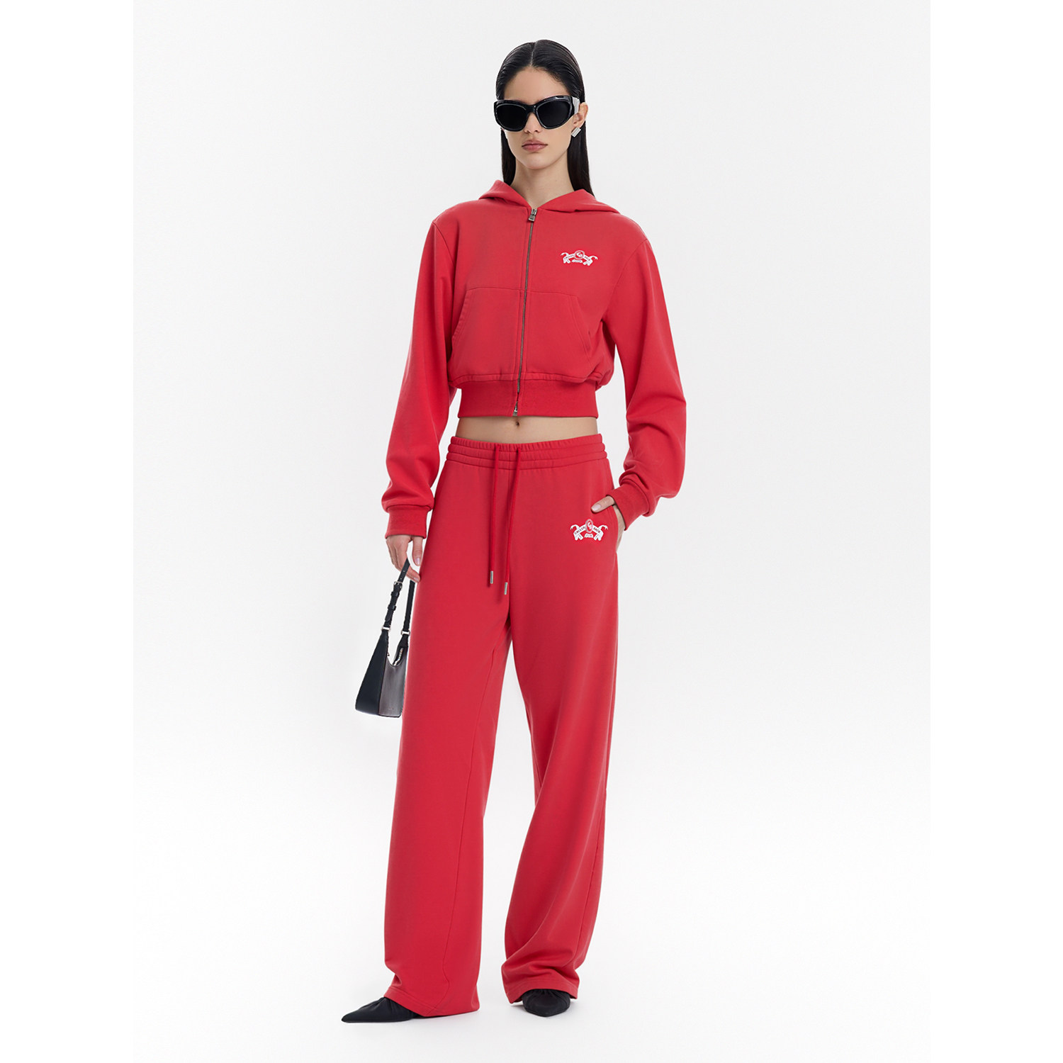 Back休闲阔腿裤 卫裤 女2026春季 红色宽松简约直筒长裤 新款 Called