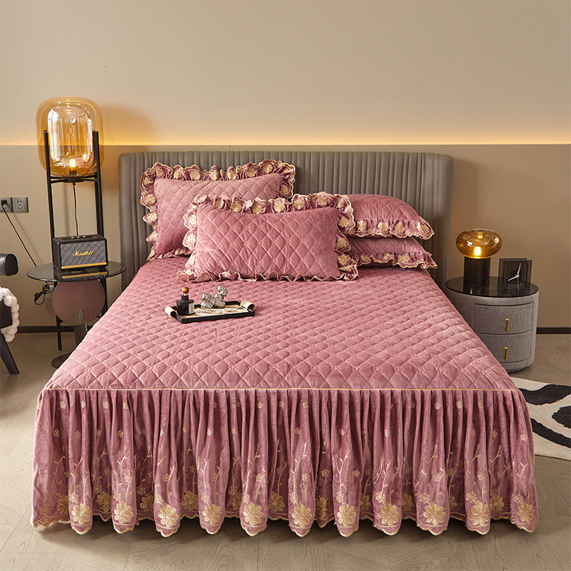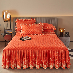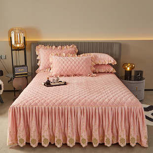 宝宝绒加厚床裙床套罩单件床罩三件套裙式 公主风绣花床垫套水晶绒