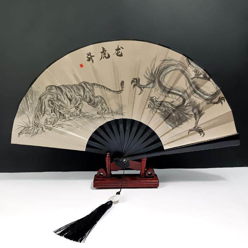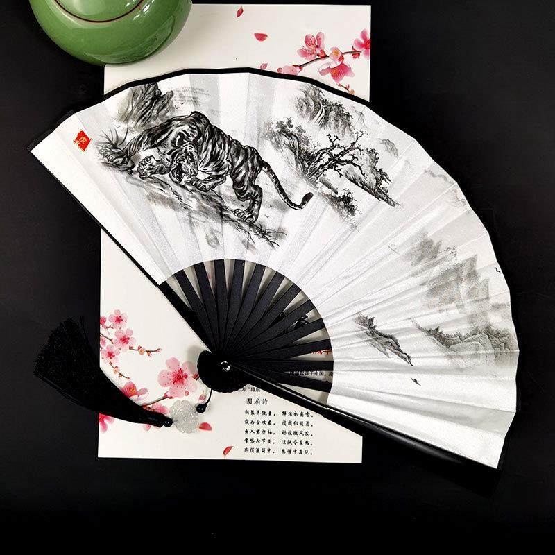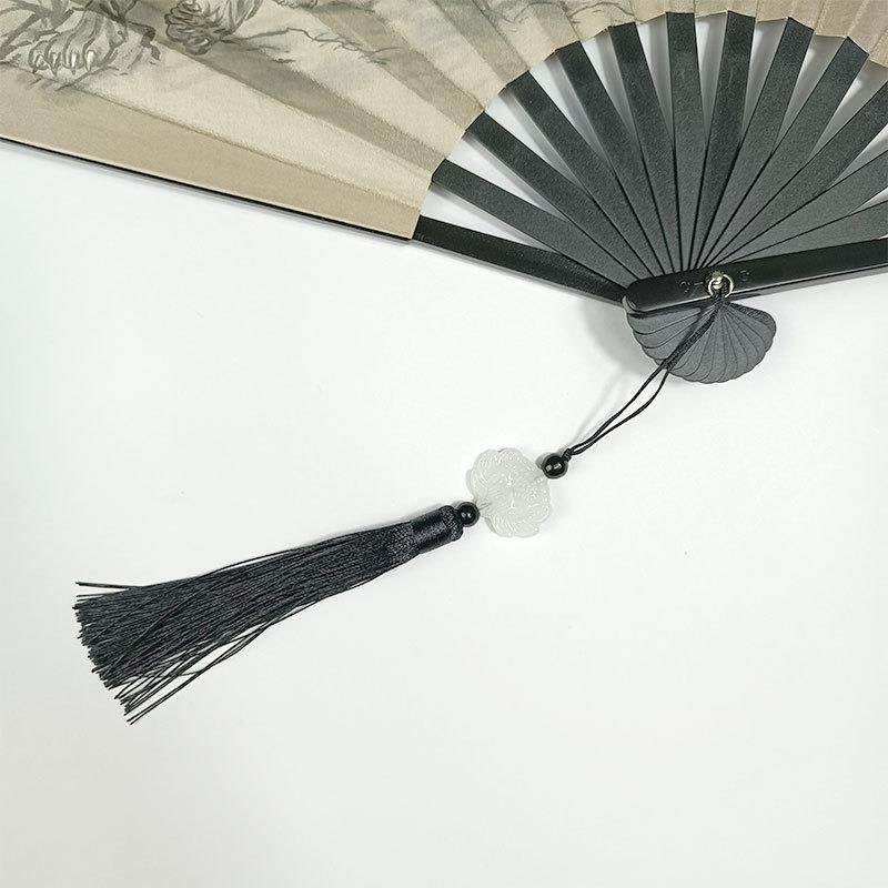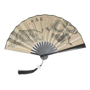 中国风8寸塑料扇带流苏吊坠古风霸气折扇男汉服舞蹈绢布扇子