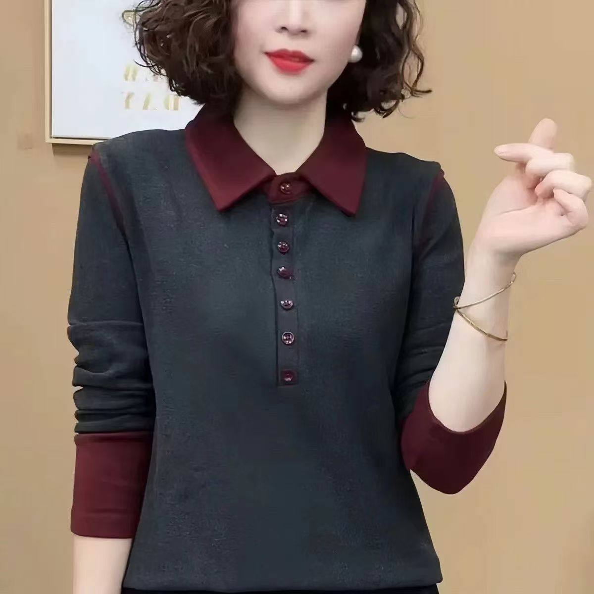 保暖衫 秋冬韩版 polo领纽扣长袖 时尚 减龄气质宽松遮肚立领上衣 新款