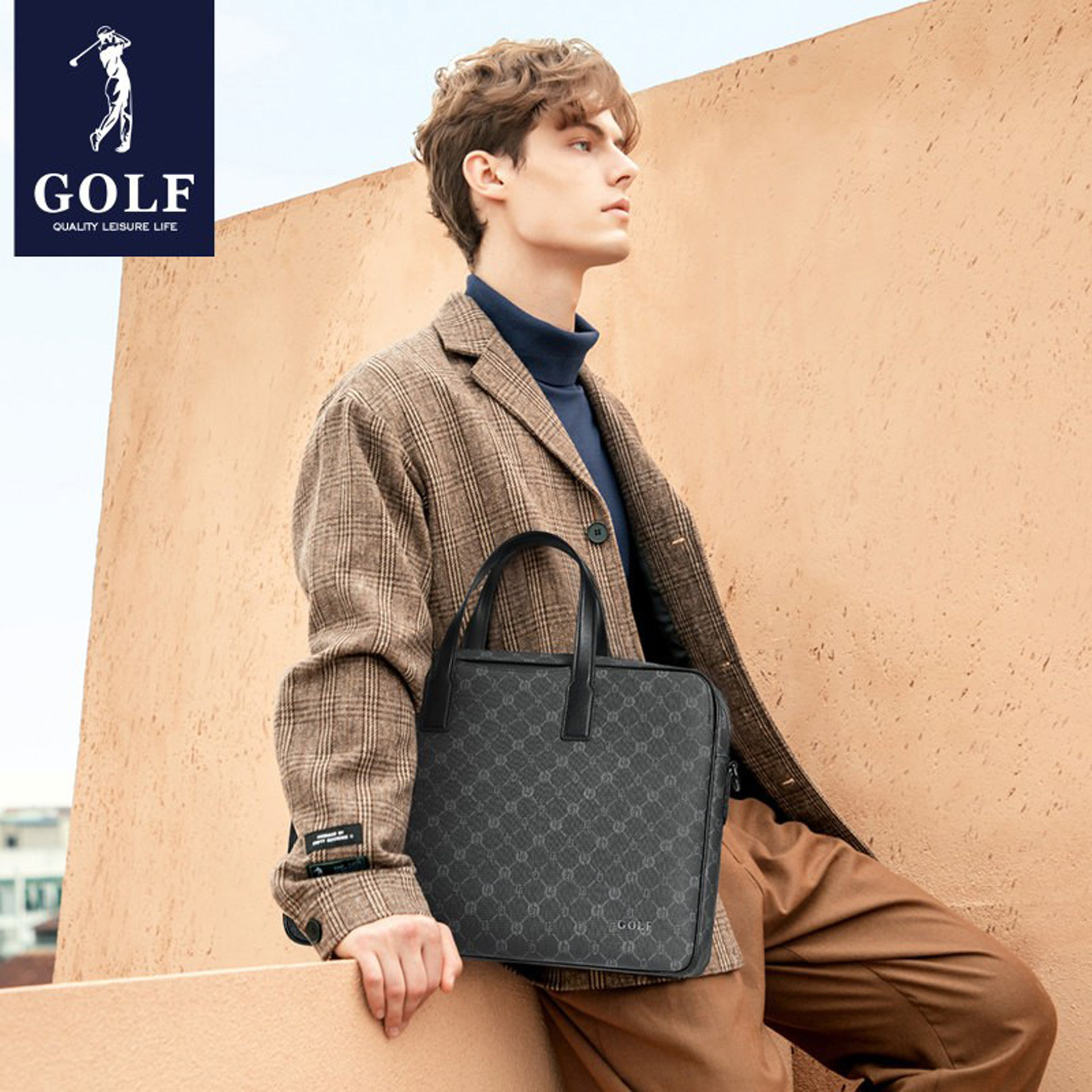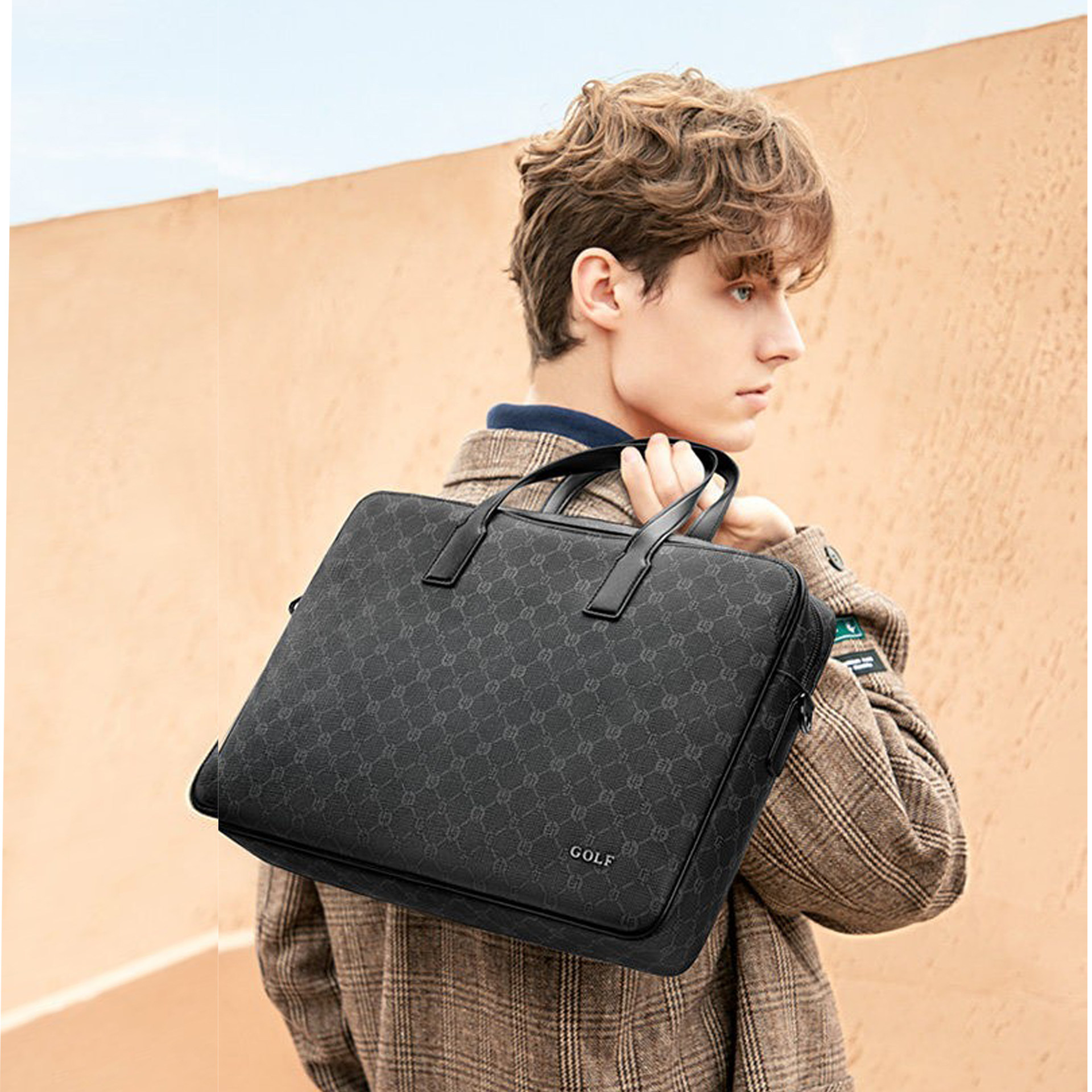 办公手提公文包 单肩时尚 GOLF品牌男士 商务文件包15.6寸电脑包男士