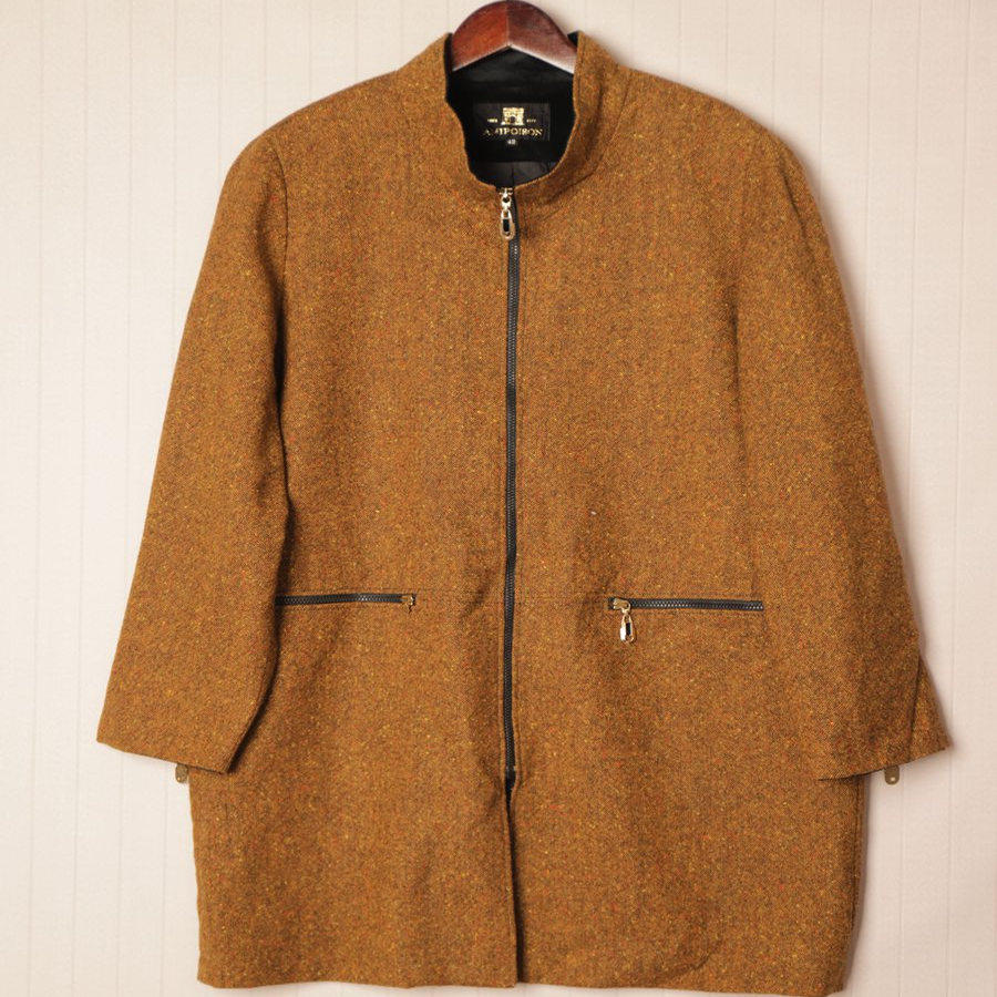 秋冬Vintage复古英伦风拼接色毛呢子大衣 D77