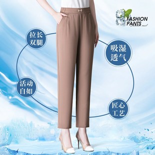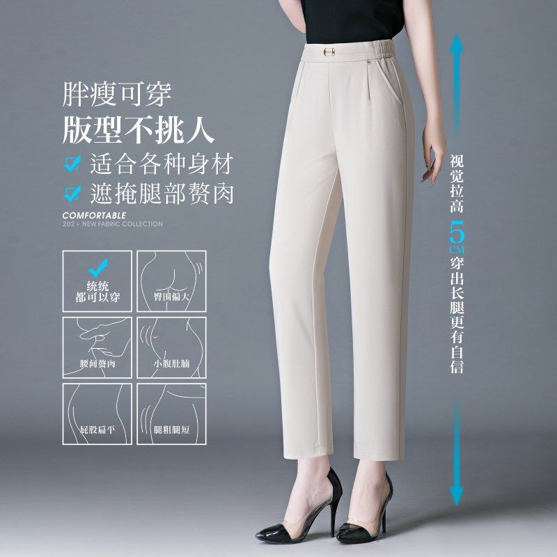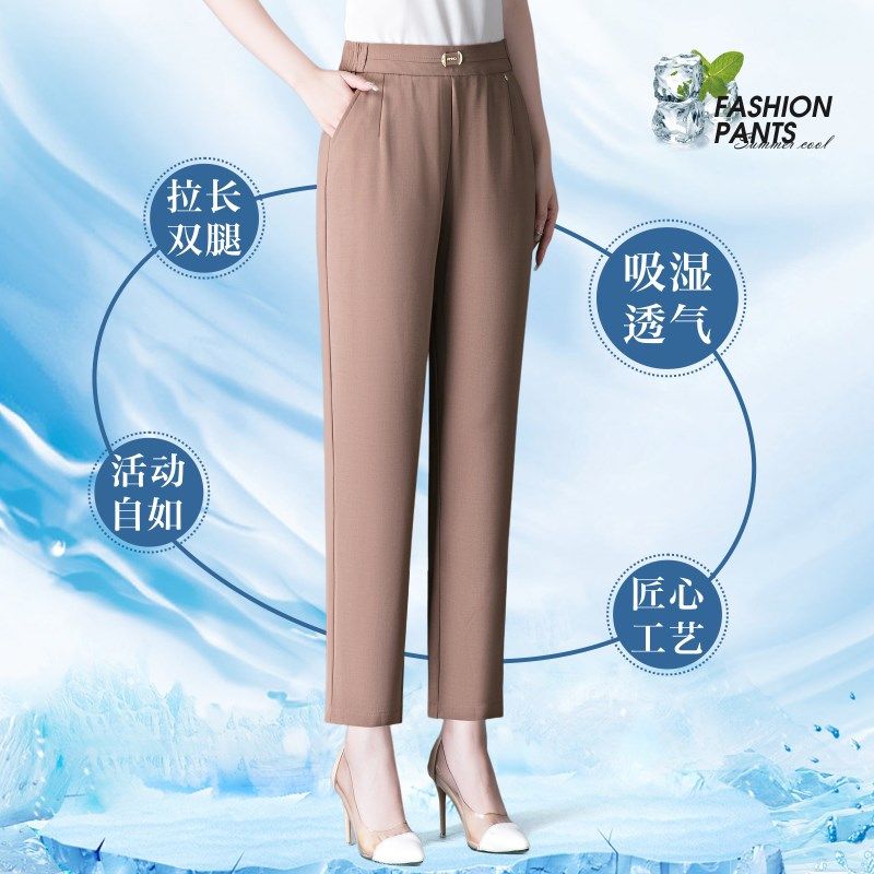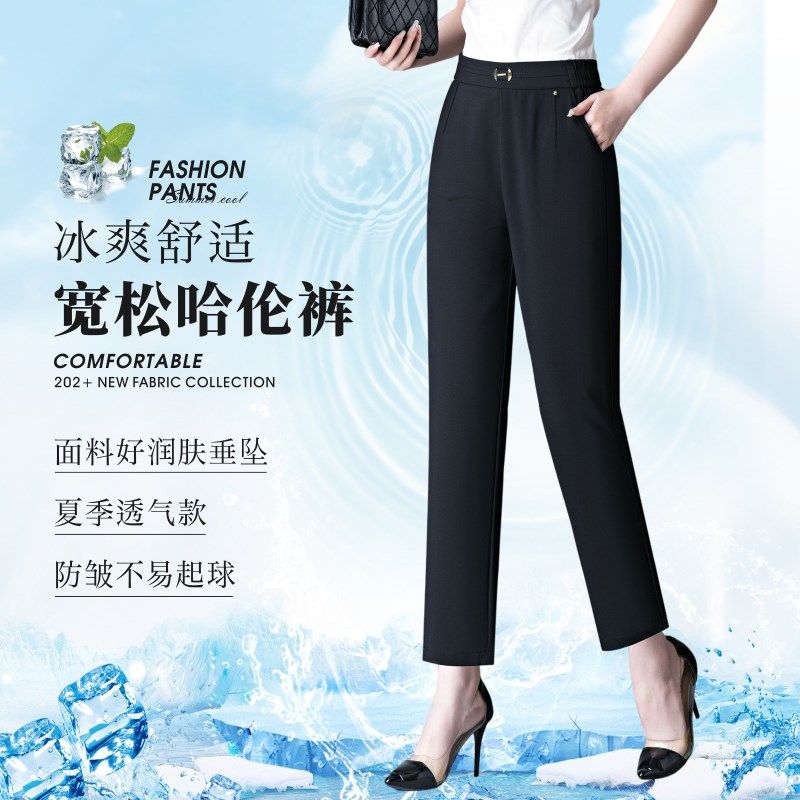 高腰直筒休闲妈妈九分裤 夏季 女2024年新款 冰丝垂感哈伦裤 宽松 薄款