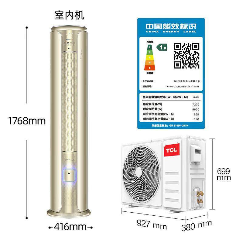 B1一级变频冷暖大新风量立柜式 T.CL大3匹KFRd XCA11 DBp 空 72LW