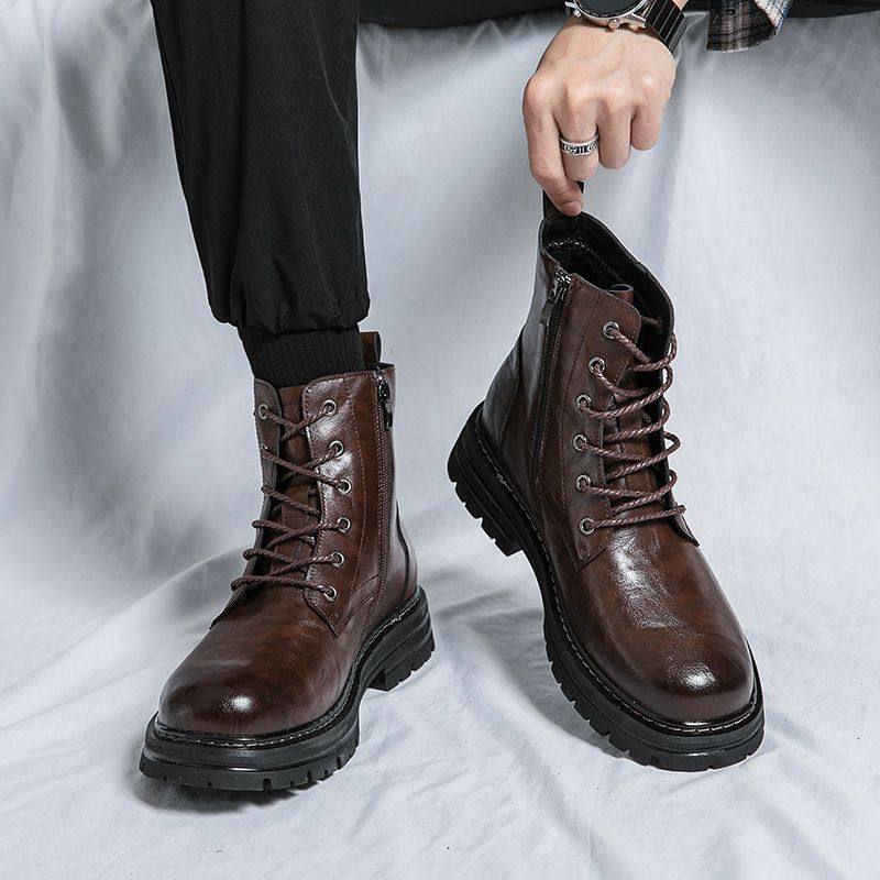 厚底增高短靴保暖棉鞋 加绒靴子2025年新款 秋冬季 英伦风马丁靴女款
