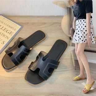 居家软底防滑复古皮纹情侣一字拖鞋 细细条 EVA高级感凉拖男女夏季