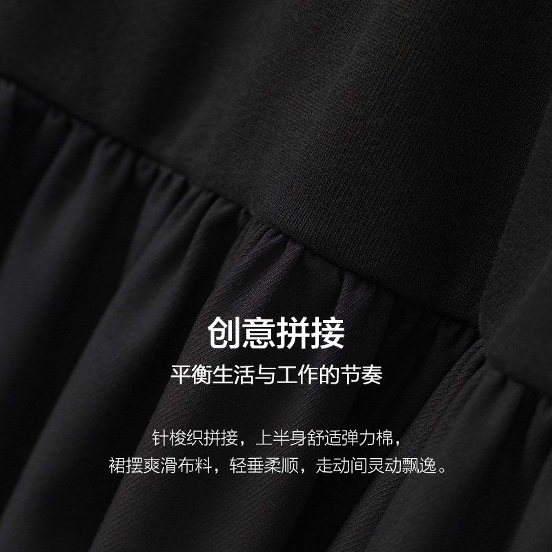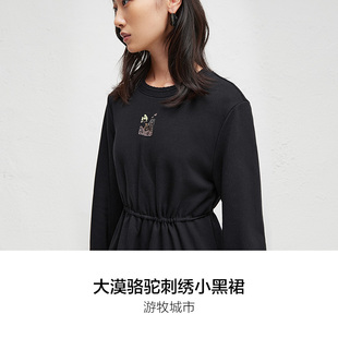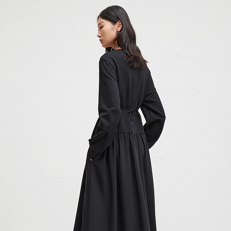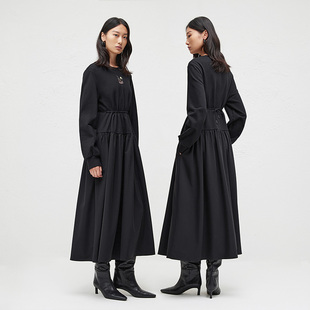 播2024冬季 黑色刺绣连衣裙女收腰显瘦圆领长裙DDR4LD5102 新款