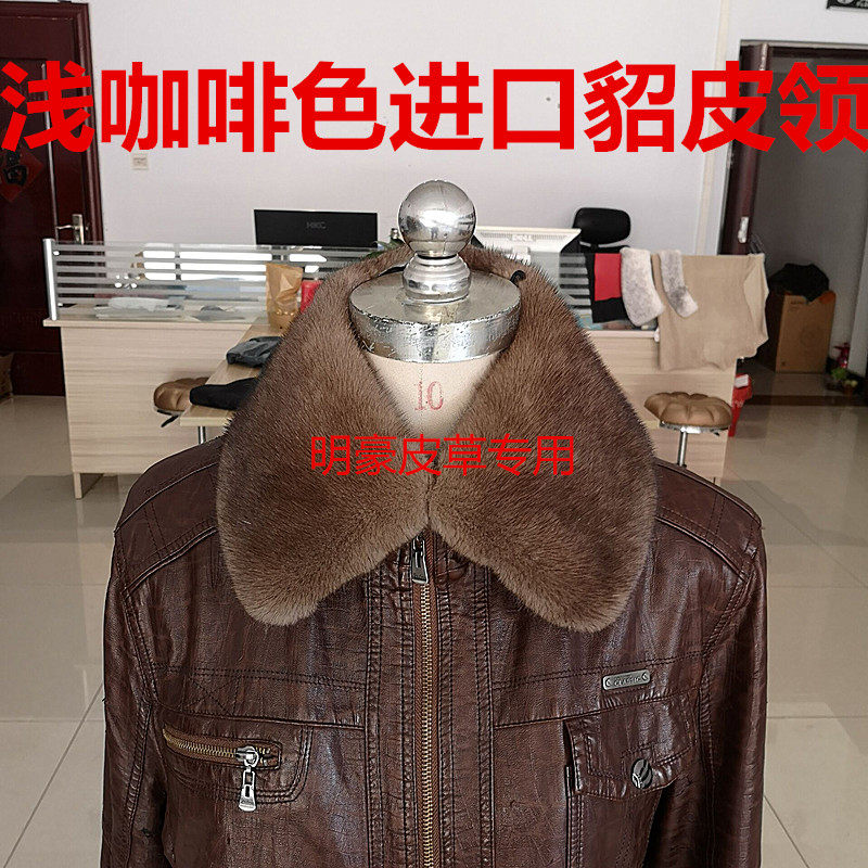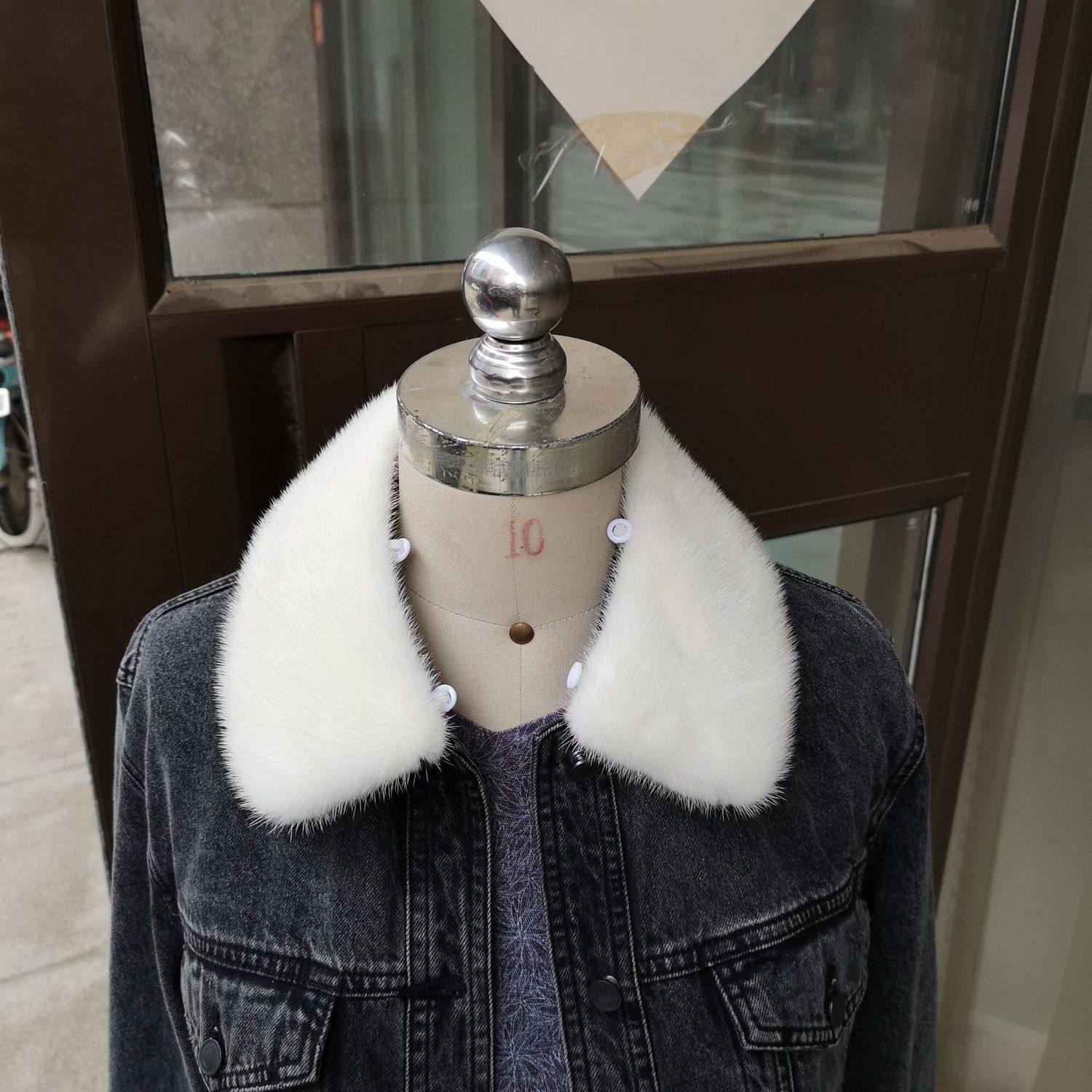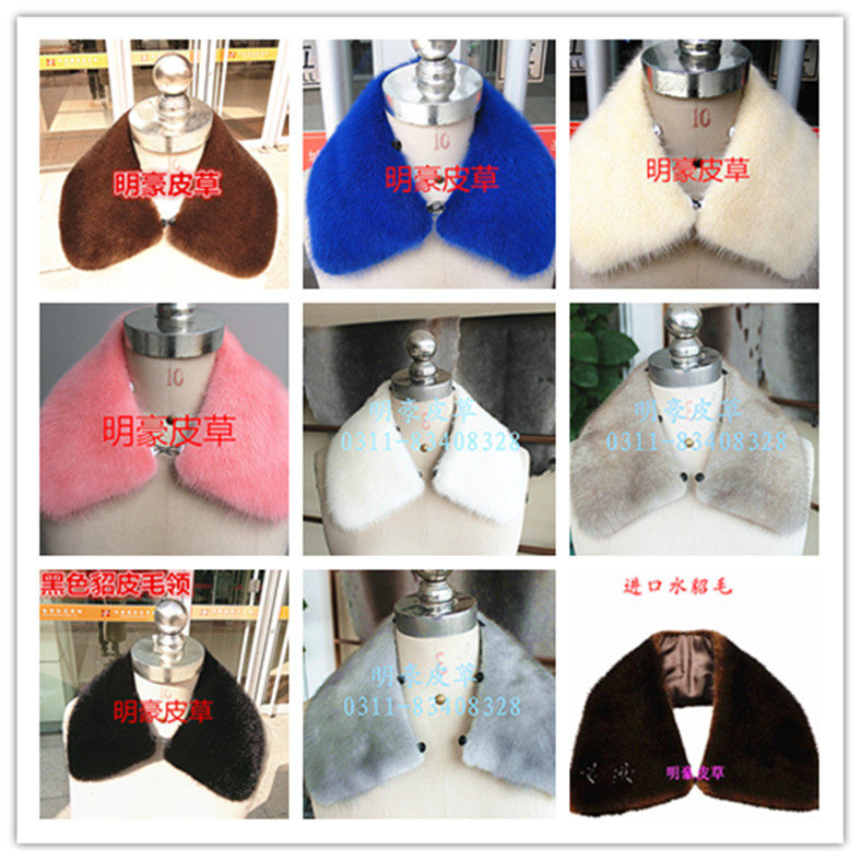 水貂毛领子男女黑棕米白铁灰宝石蓝珍珠白色貂皮真毛定做圆领方领