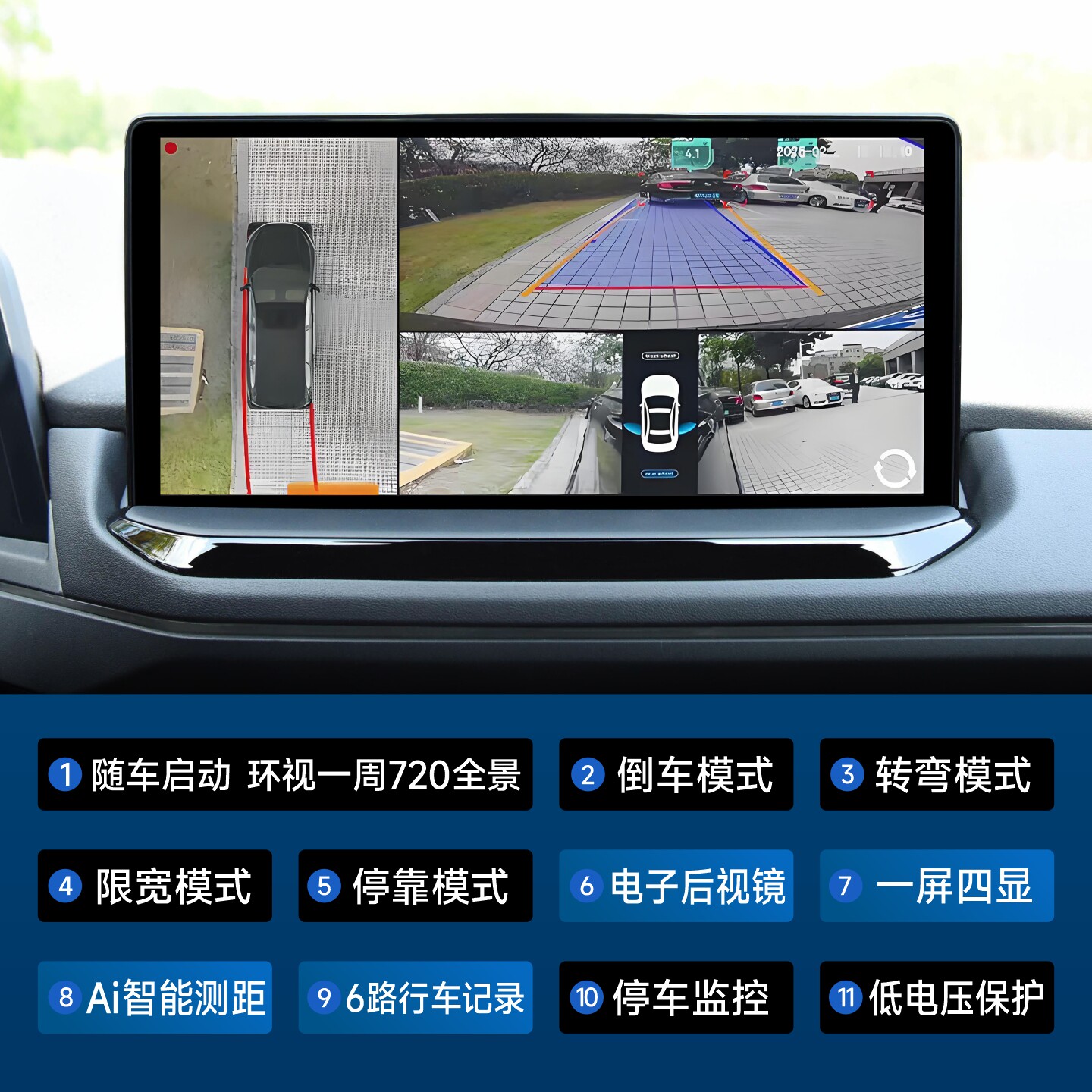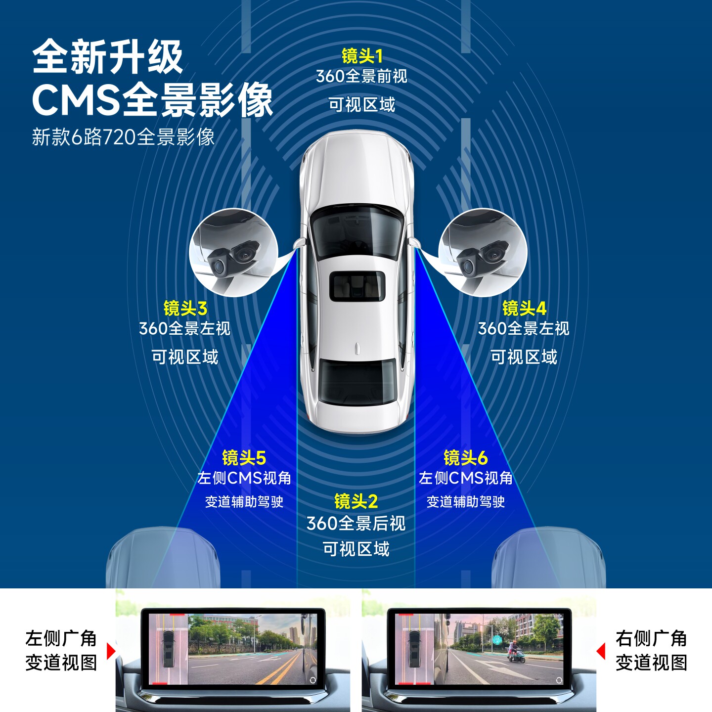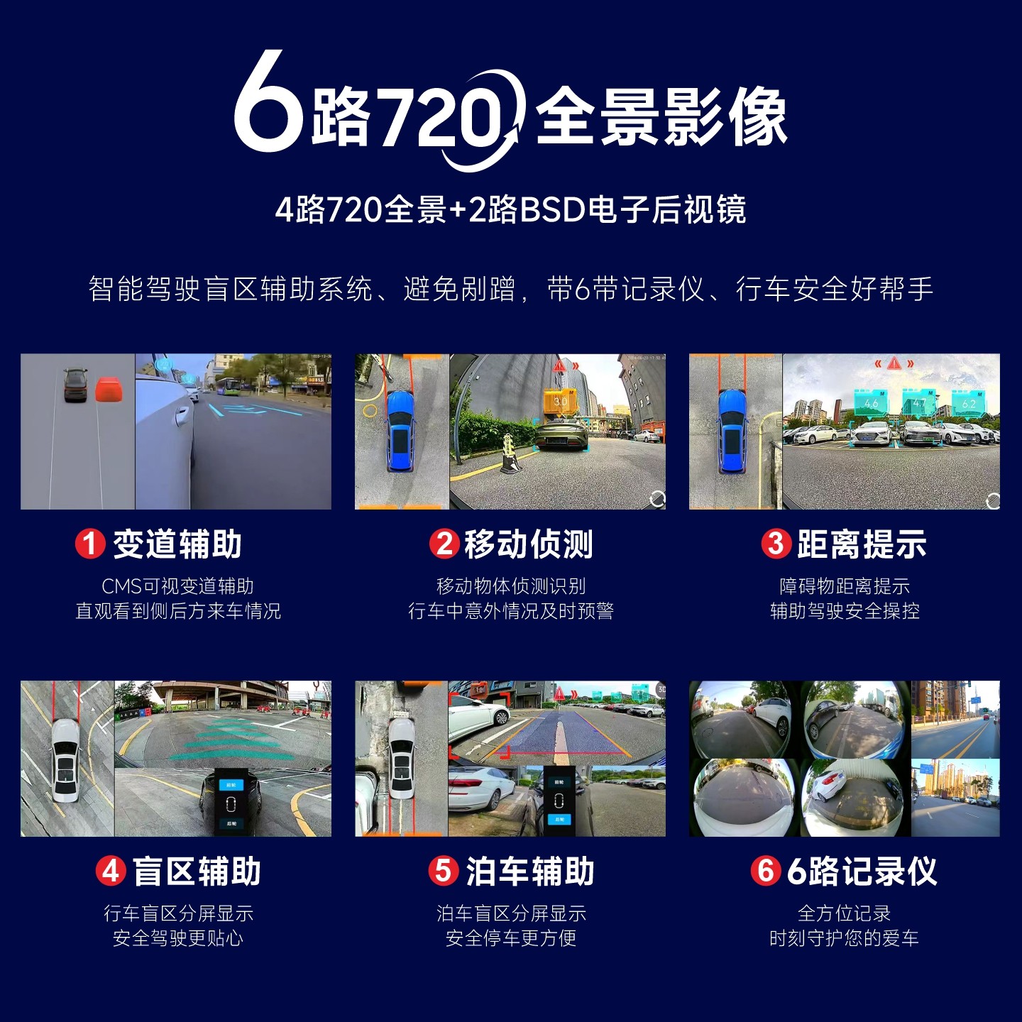 原车屏加装 6路360行车记录仪720全景汽车倒车摄像CMS盲区辅助系统