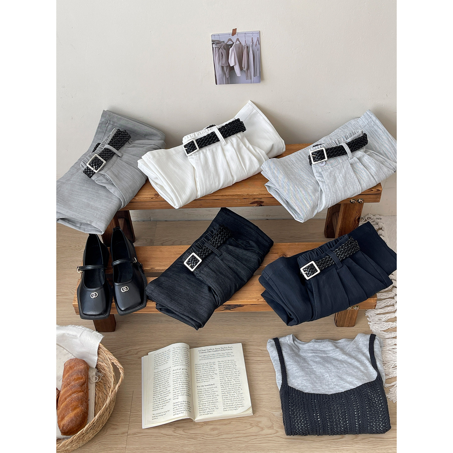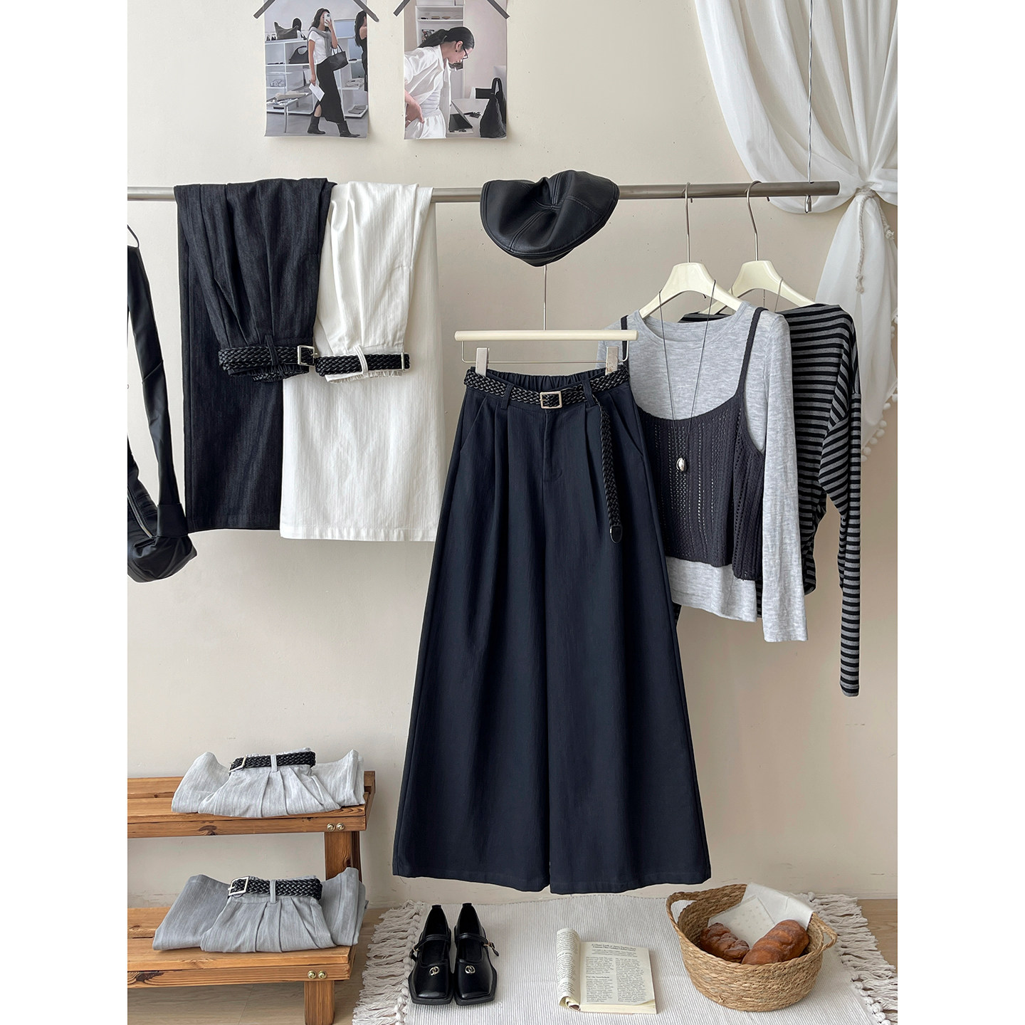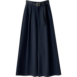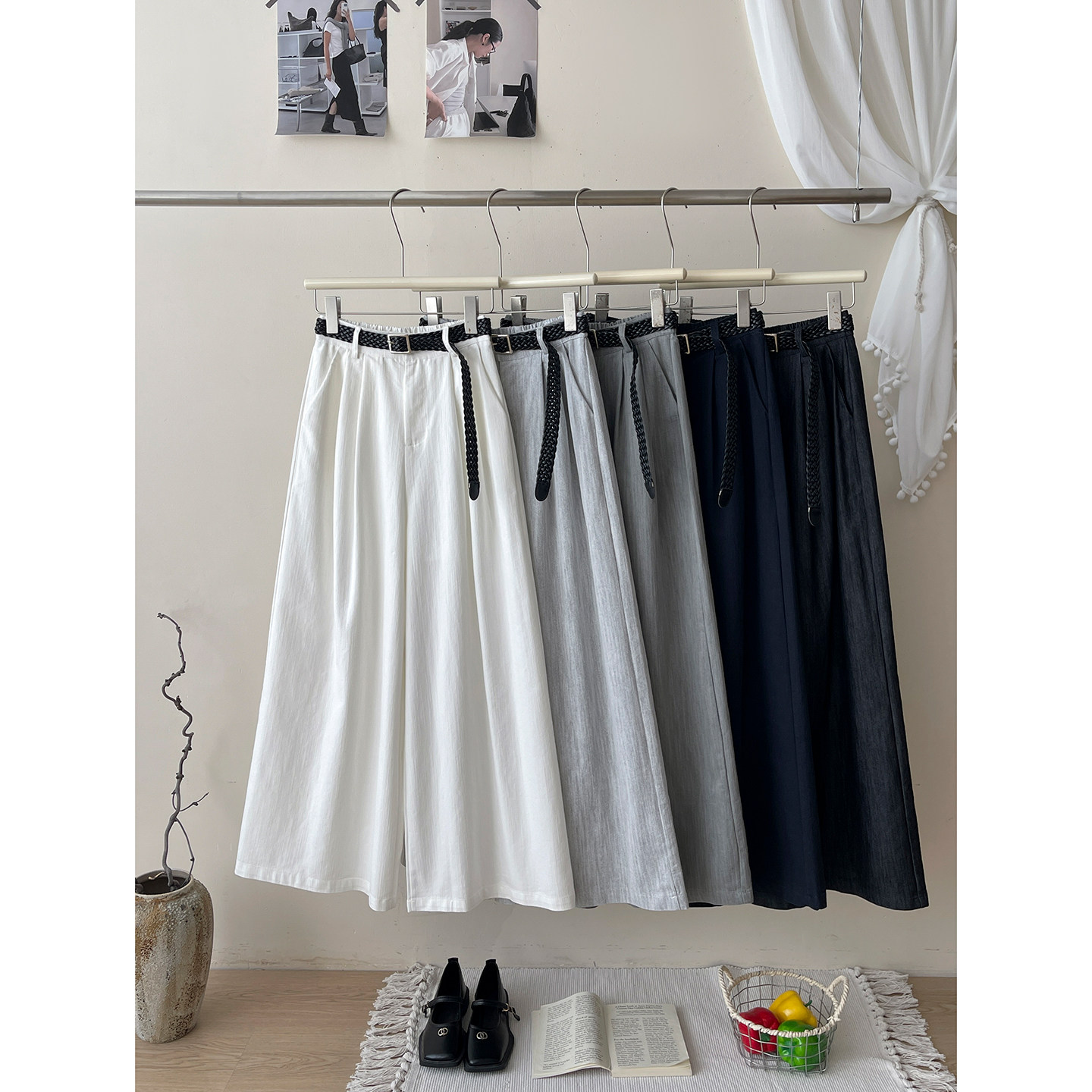 日韩系老钱风仿牛仔棉麻压褶阔腿裤 女春百搭慵懒松弛感直筒休闲裤