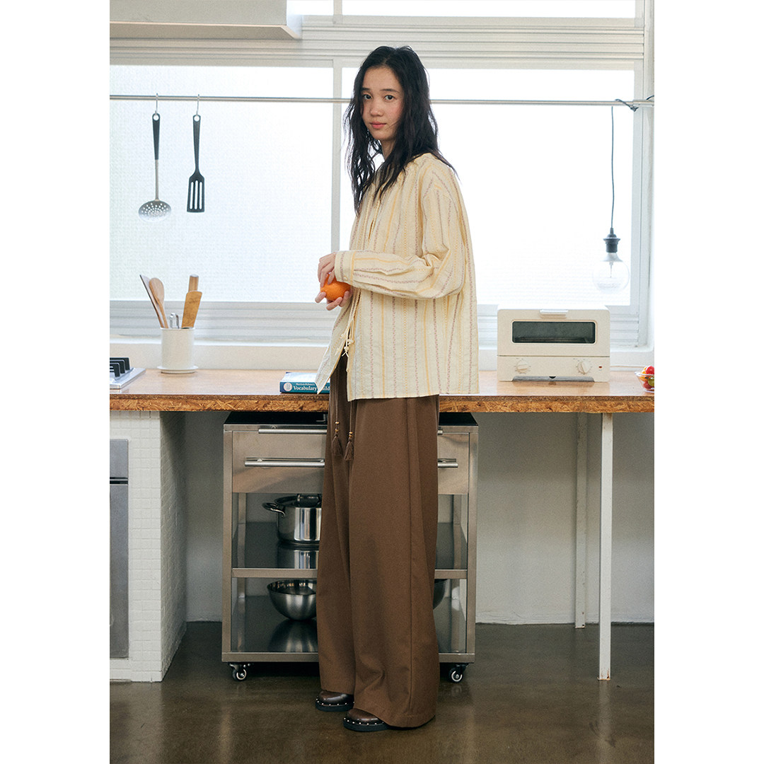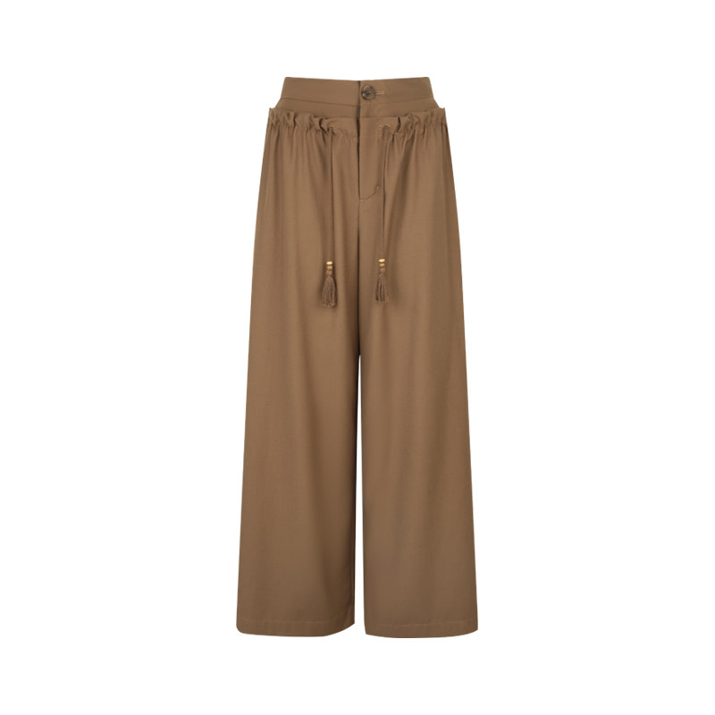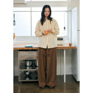 裤 垂感西装 女法式 慵懒休闲裤 BLUEerror 子秋季 花边抽绳棕色阔腿裤
