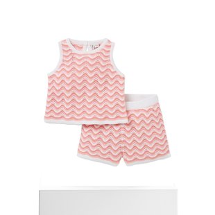 毛衣外套木耳边百褶裙套装 柒月末 撞色拼接假两件针织开衫