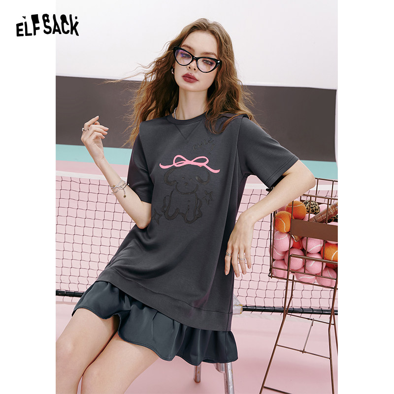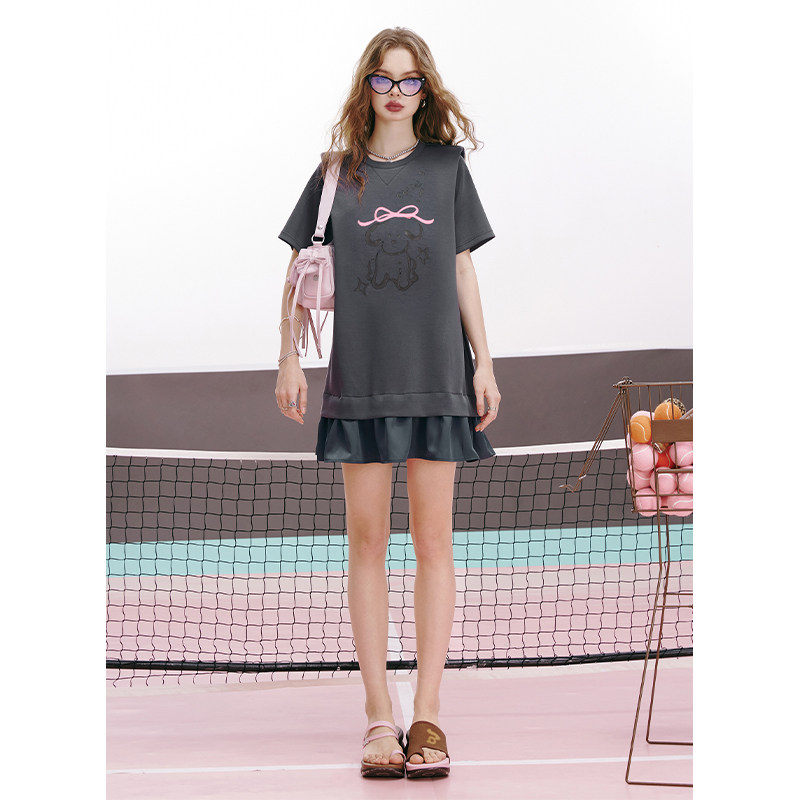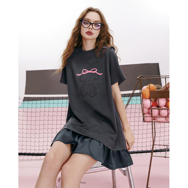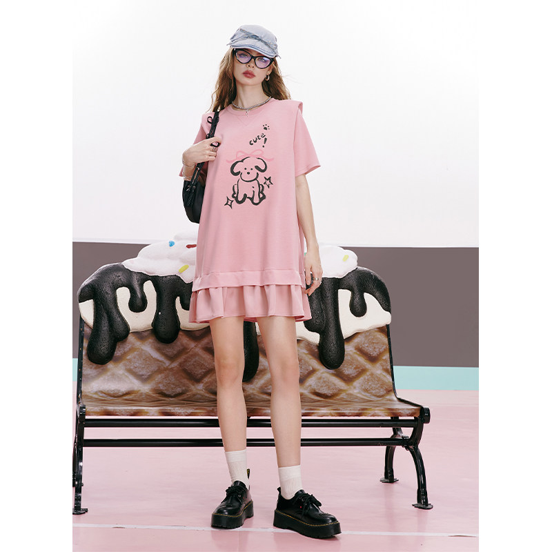 宽松显瘦直筒裙子 新款 妖精 口袋萌趣小狗印花连衣裙女2026年夏季