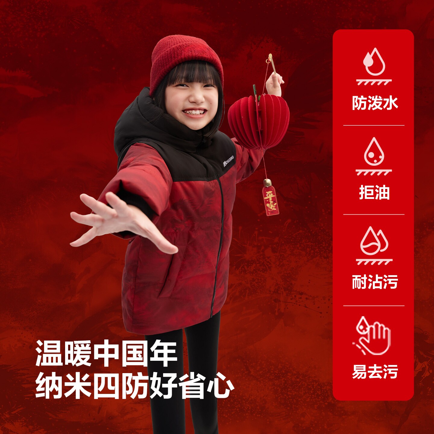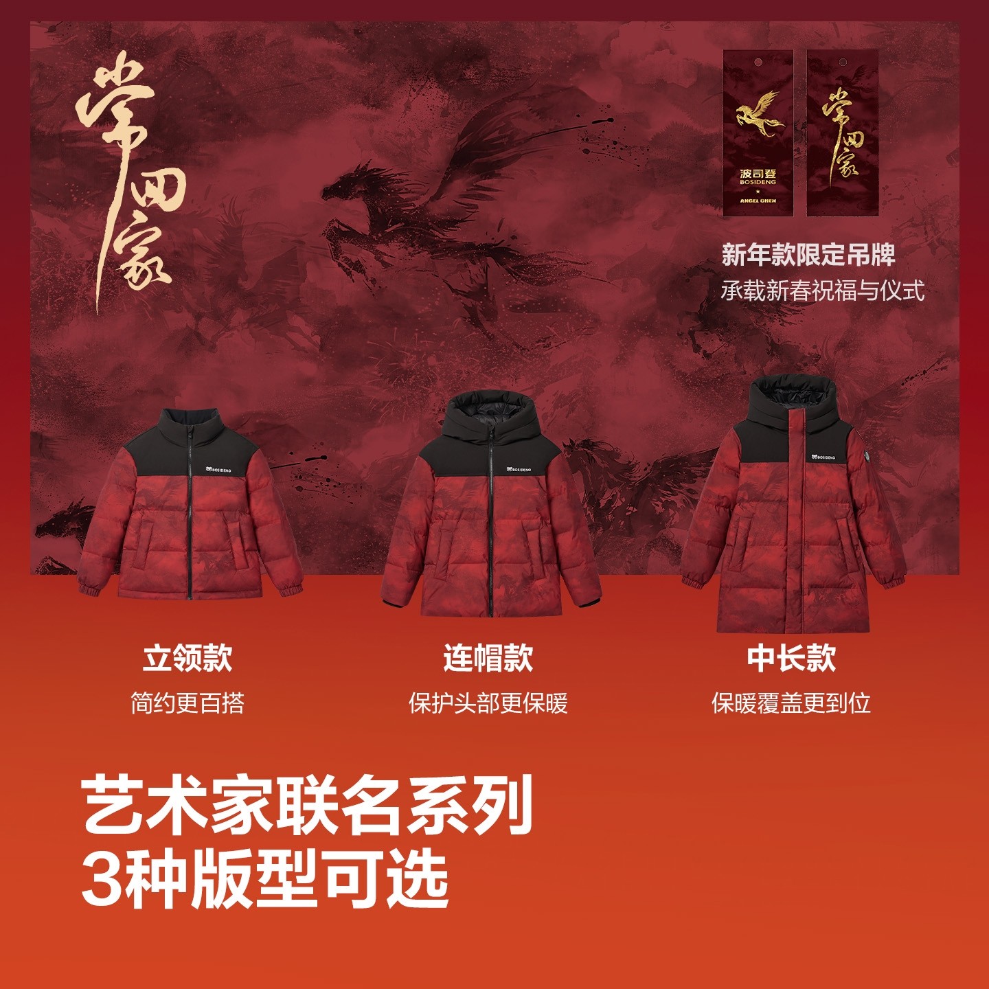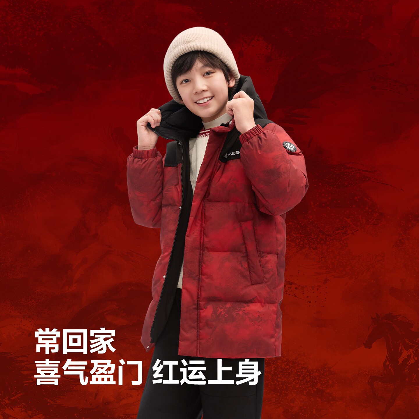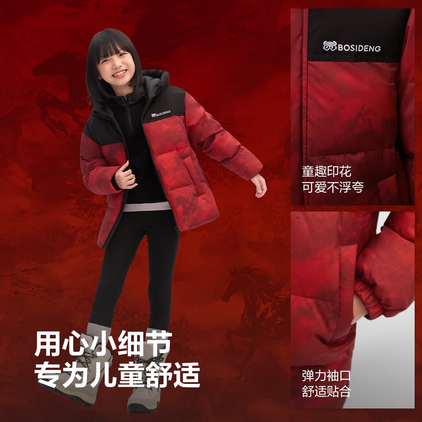 连帽运动羽绒服四防 新年联名波司登儿童羽绒服中长款 25年新品