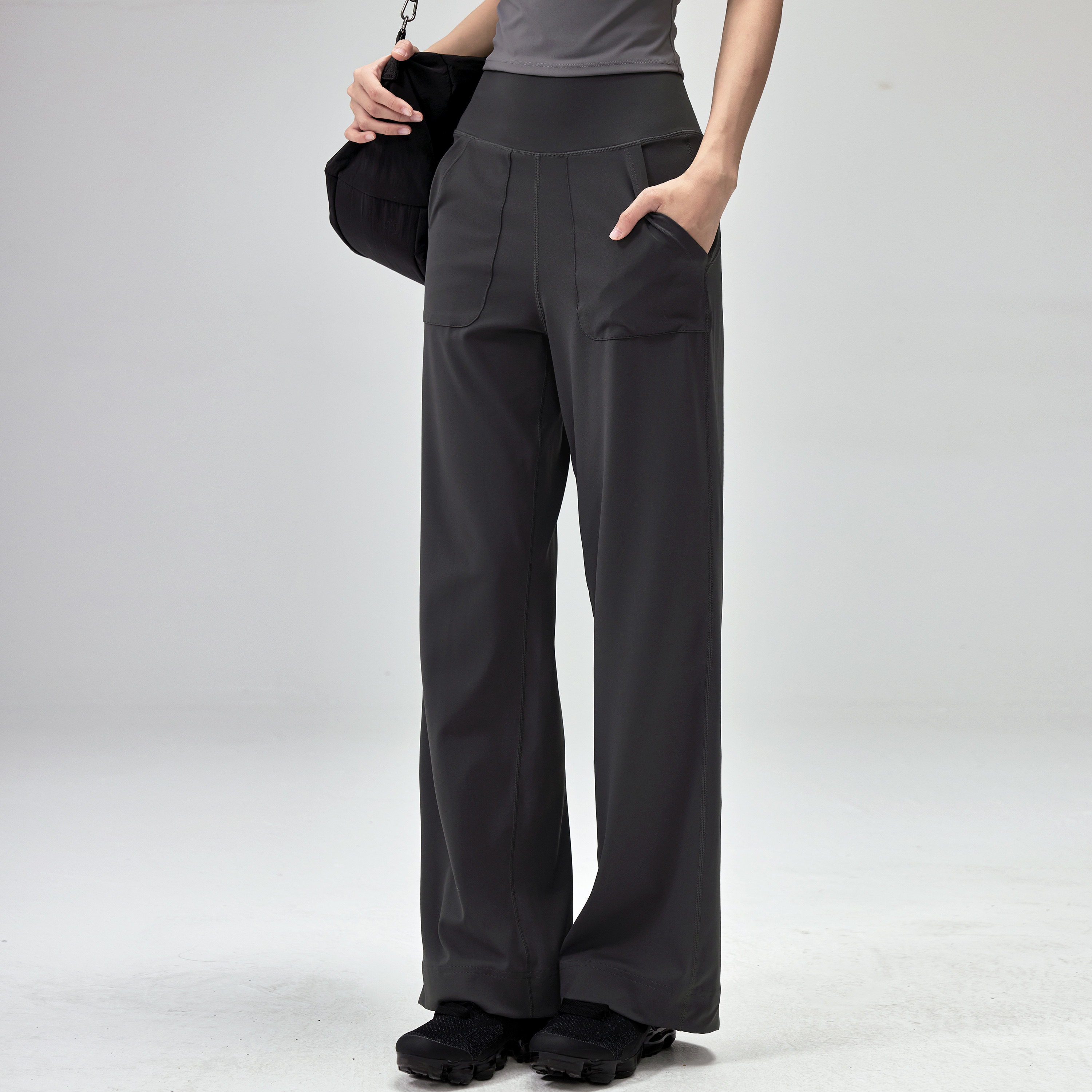 新 秋休闲跑步训练裸感阔腿长裤 健身女孩高腰运动裤 宽松显瘦瑜伽裤
