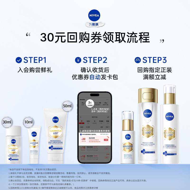 护 妮维雅630精华乳50ml油皮补水去黄焕白淡斑强韧保湿 天猫U先