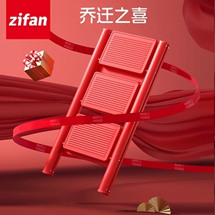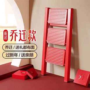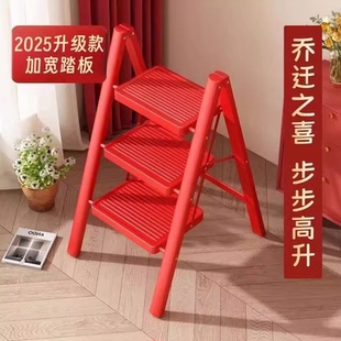 日本家用红色乔迁梯子折叠加厚步步高升人字梯室内爬梯三四步楼梯