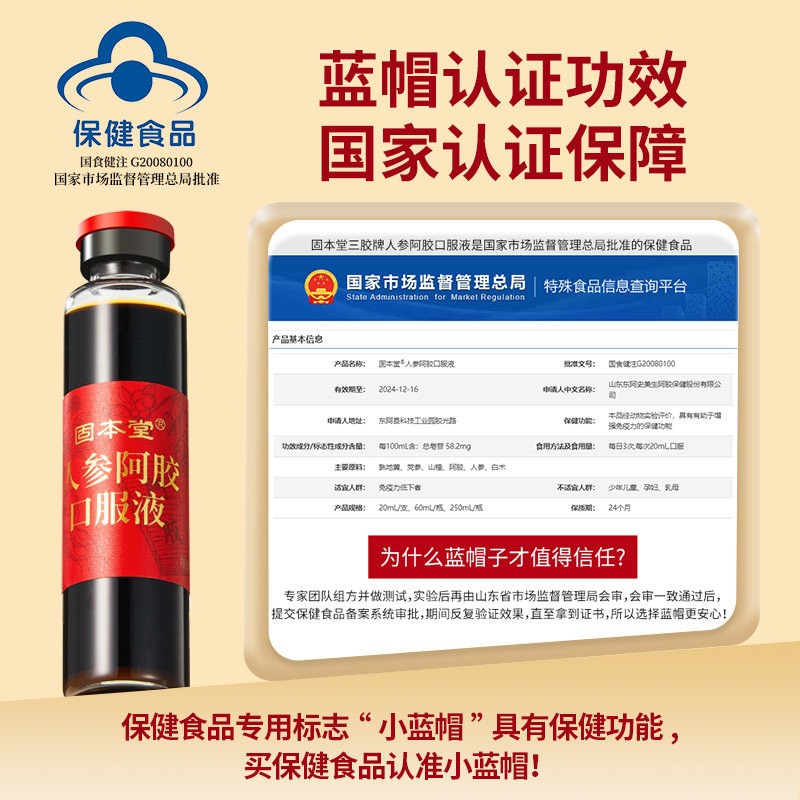固本堂人参阿胶口服液年货礼盒过年送礼补气血补品贫血养血礼品装