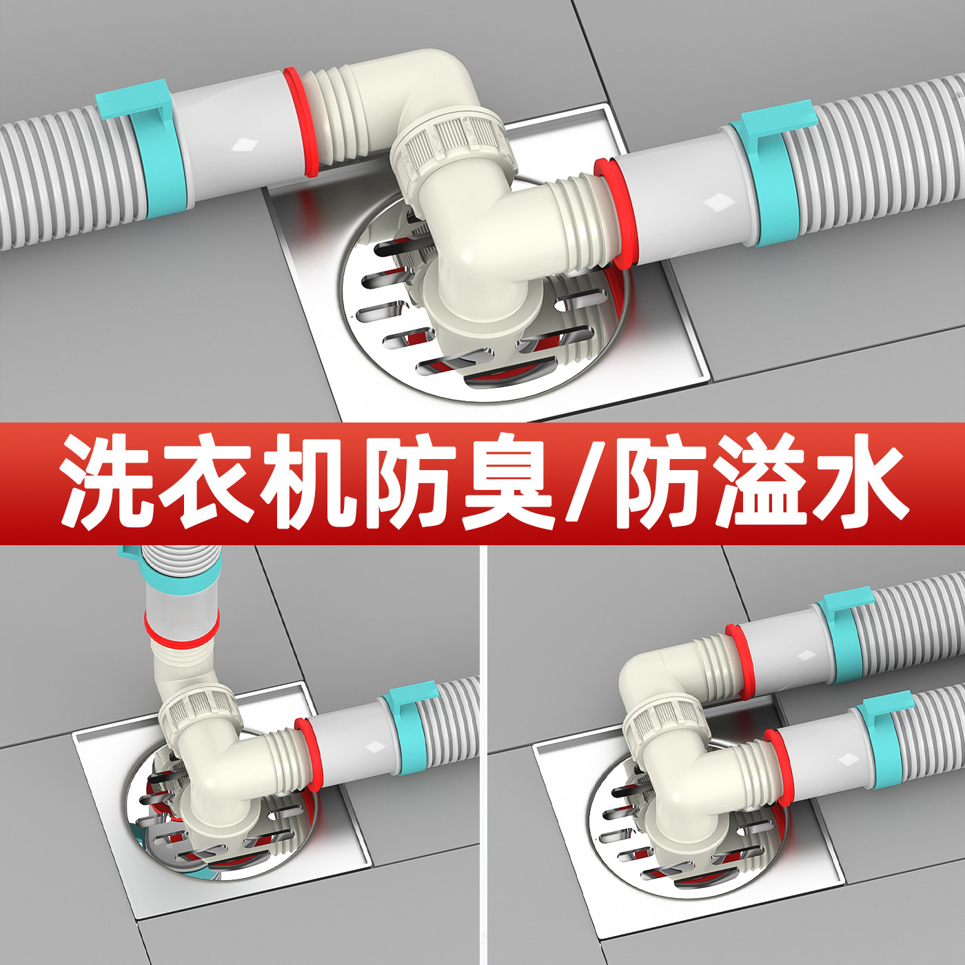 洗衣机下水管三头通地漏双排水专用接头排水管道二合一防臭防溢水