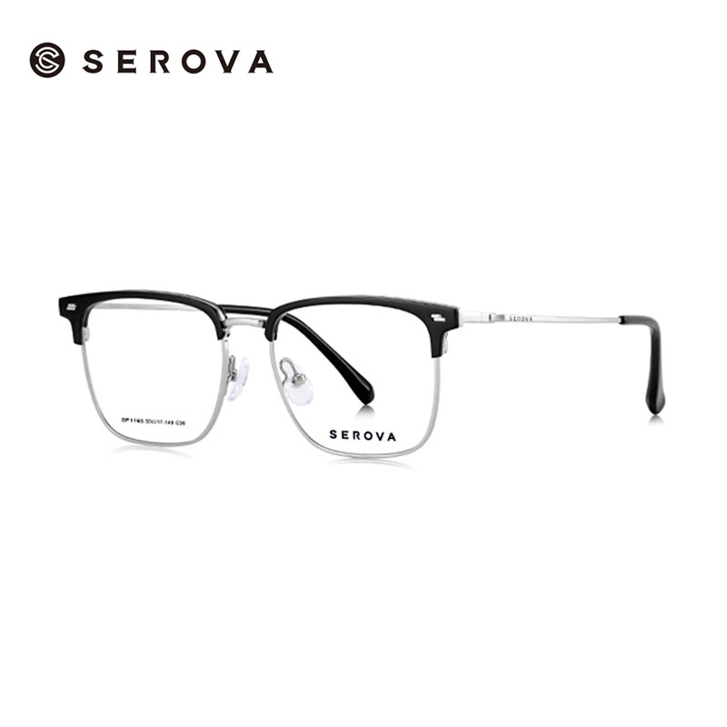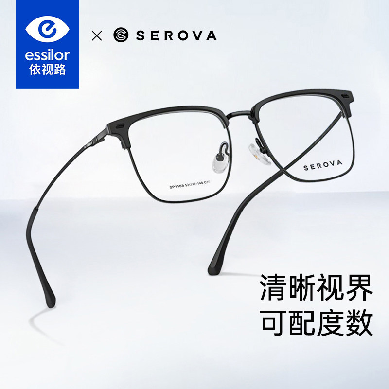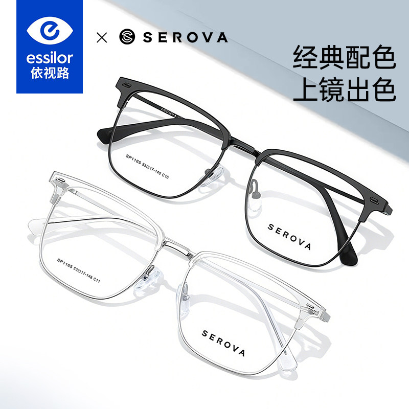 依视路镜片施洛华商务半框近视眼镜男女超轻眉线框钛架配镜SP1165
