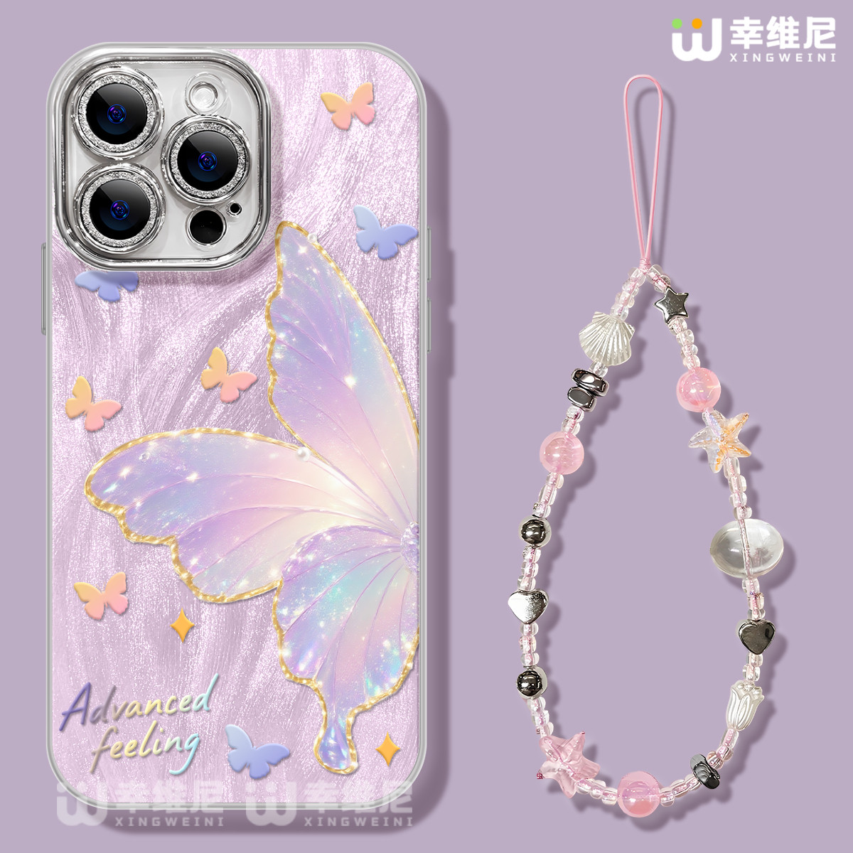 12硬8p 15pro全包14promax防摔11 17Air镜头膜13pro蓝色蝴蝶15plus xr苹果16pro新款 适用iPhone17手机壳xs女款
