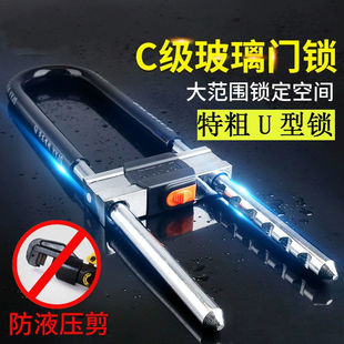 玻璃门锁U型锁锁具双门插锁玻璃锁推拉门长锁商铺u锁型室外U形锁