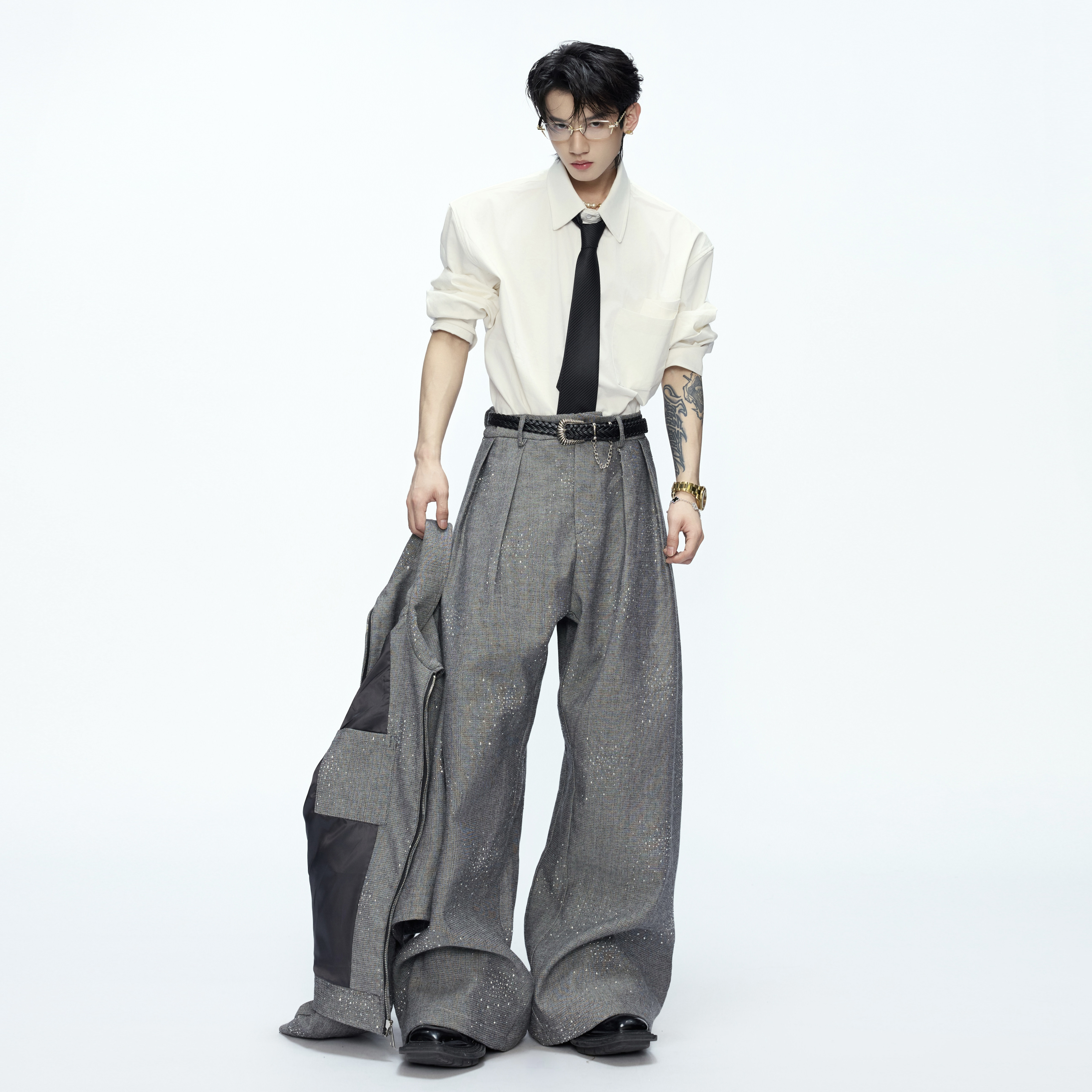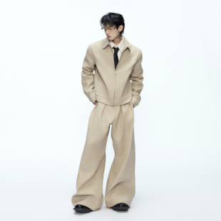 裤 CulturE小众复古做旧牛仔套装 夹克外套废土重磅拉链大口袋工装