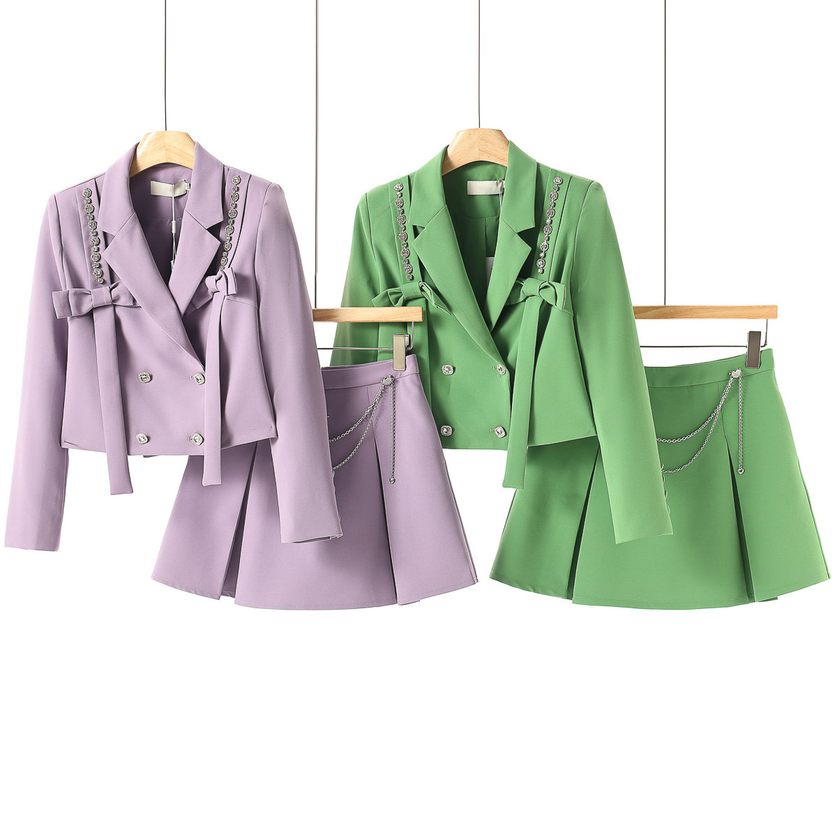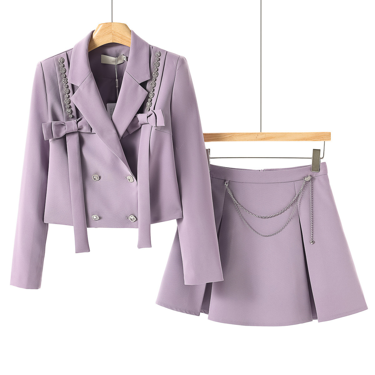 链条防走光短裙套装 专柜 水钻蝴蝶结外套 秋季 043 木X