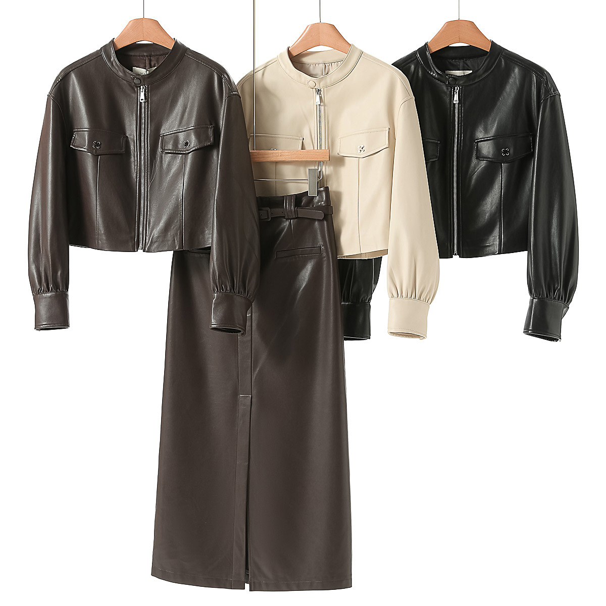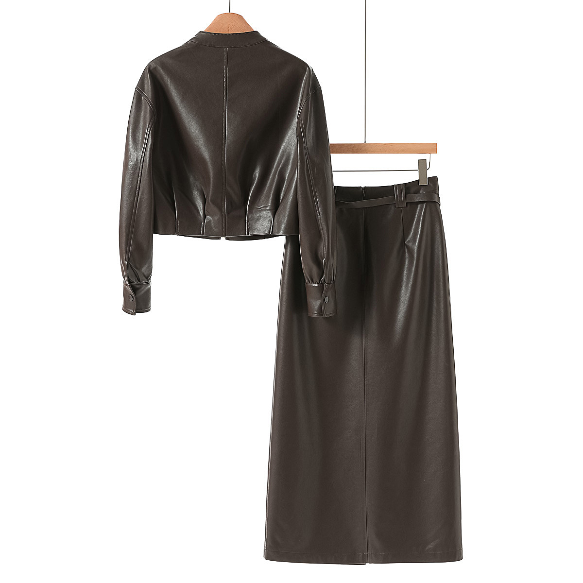 木X 配腰带半身长裙PU皮质套装 秋装 外套 355 短款 专柜