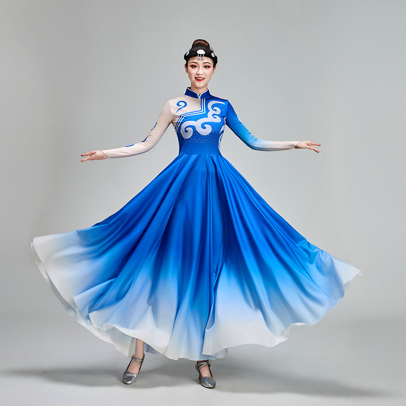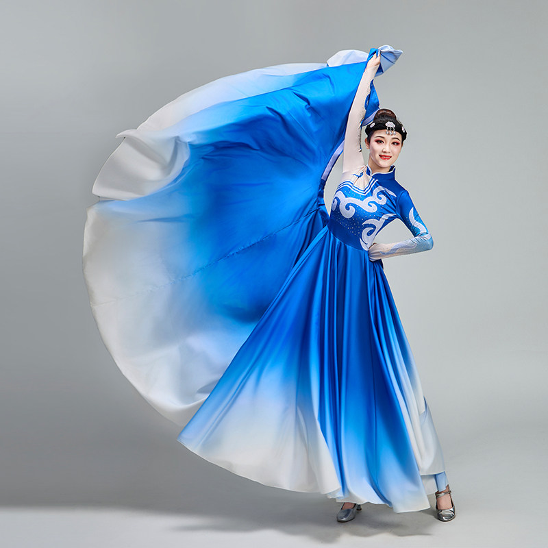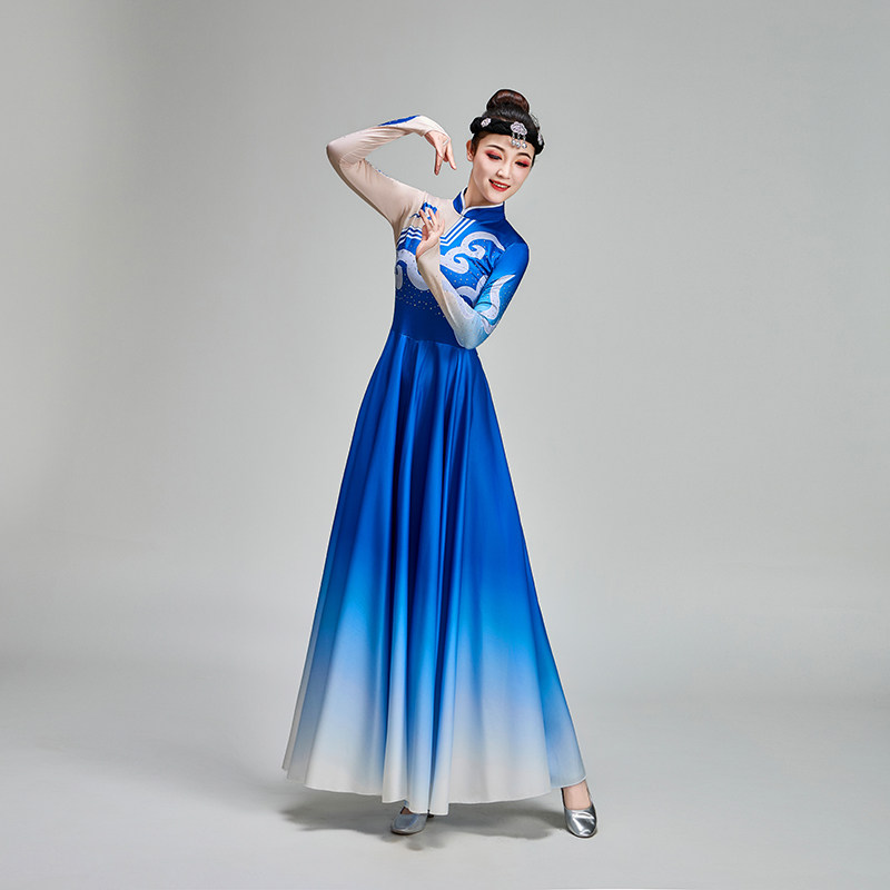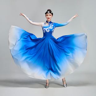 舞蹈裙披毡女子艺考服装 云水伊人舞蹈服装 彝族舞蹈服大摆裙一片式