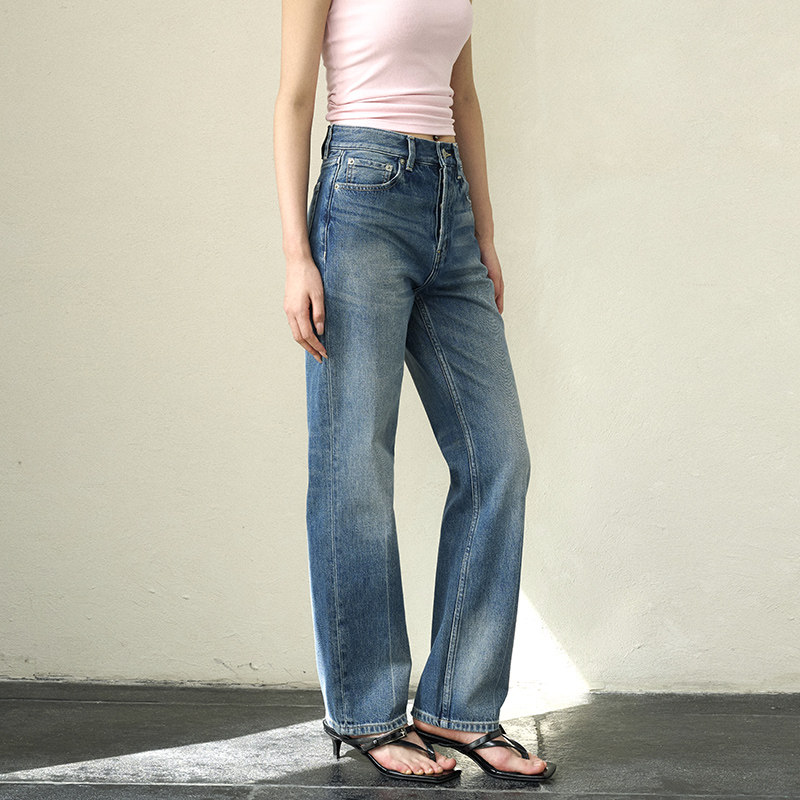 GUS窄版 土耳其进口面料酵洗工艺复古全棉无弹质感 直筒排扣牛仔裤