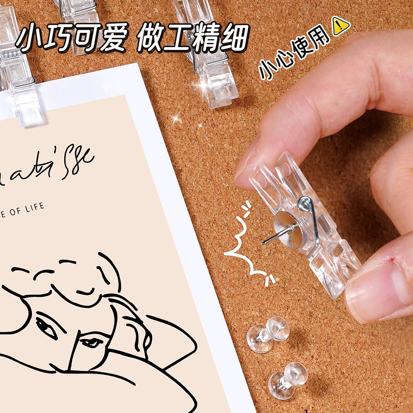 透明照片夹ins图钉夹子挂钩幼儿园留言毛毡板钉子工字钉卡片相片展示夹软木板毛毡墙diy明信片固定挂墙装 饰钉
