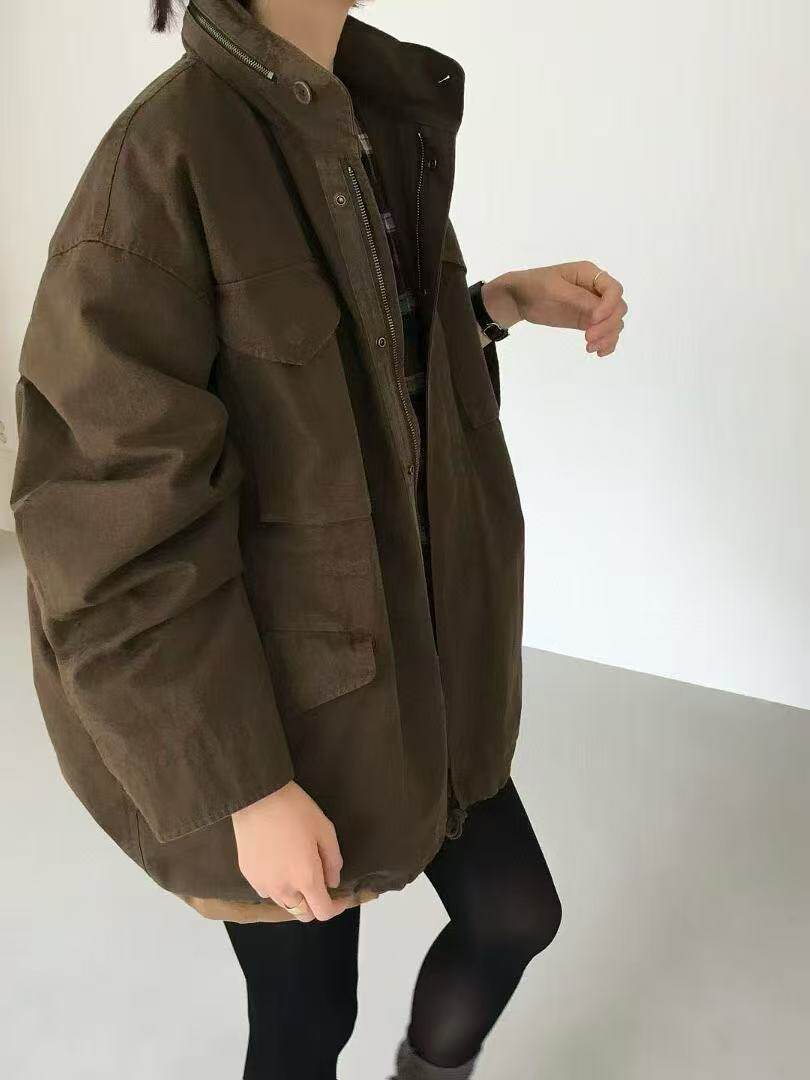 SERVICE25复古风宽松立领连帽风衣外套女 SELF 现~韩国正品 新款