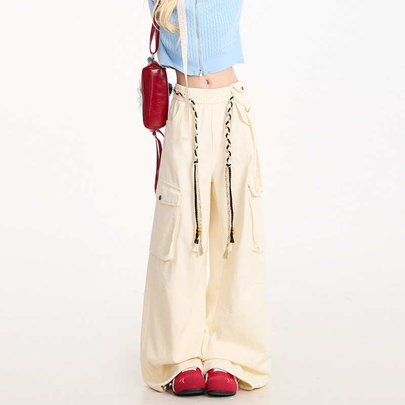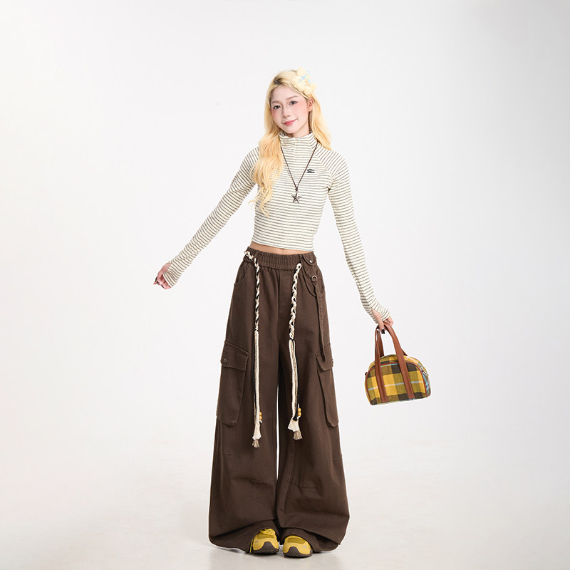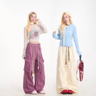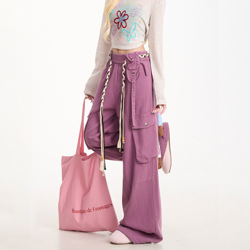 裤 阔腿显瘦长裤 女美式 新款 复古多口袋水洗直筒裤 NERESUM紫色工装