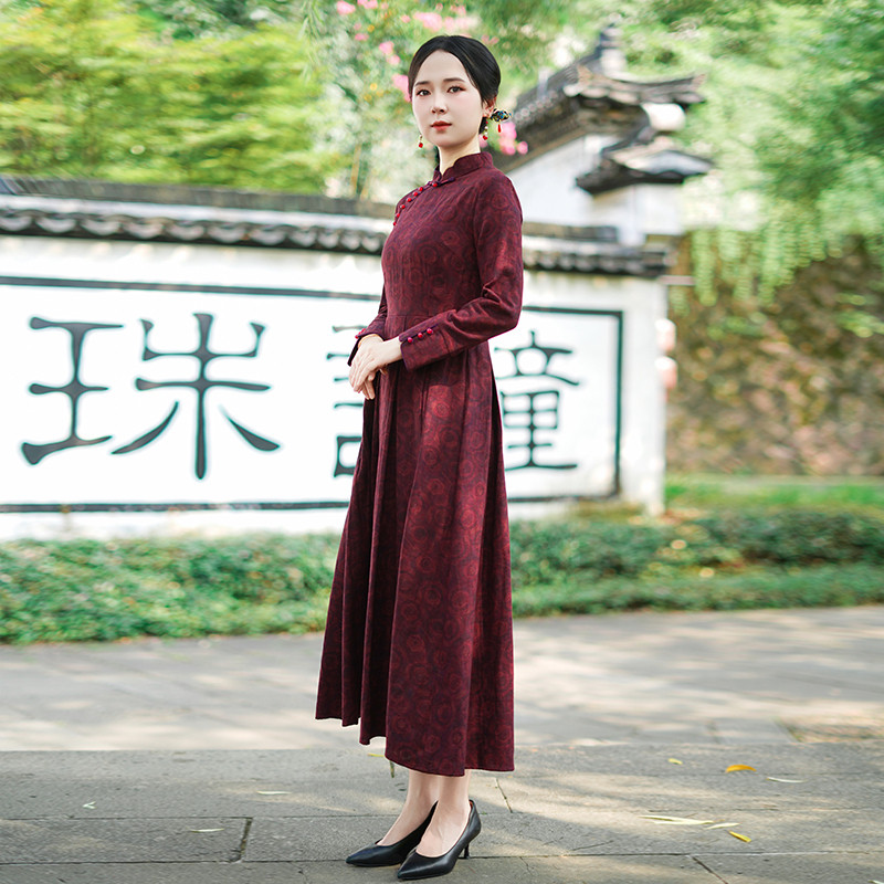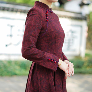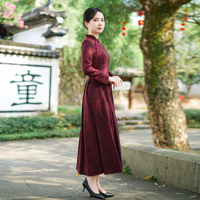 加绒加厚长款 长袖 古法旗袍2025新款 女复古修身 年轻款 ③冬款