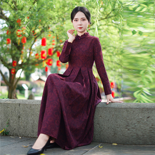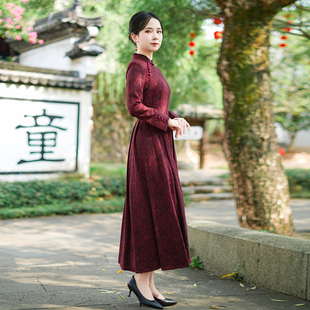 复古连衣裙 旗袍新中式 陌遇原创2025秋冬民国风新款 改良提花缎大码