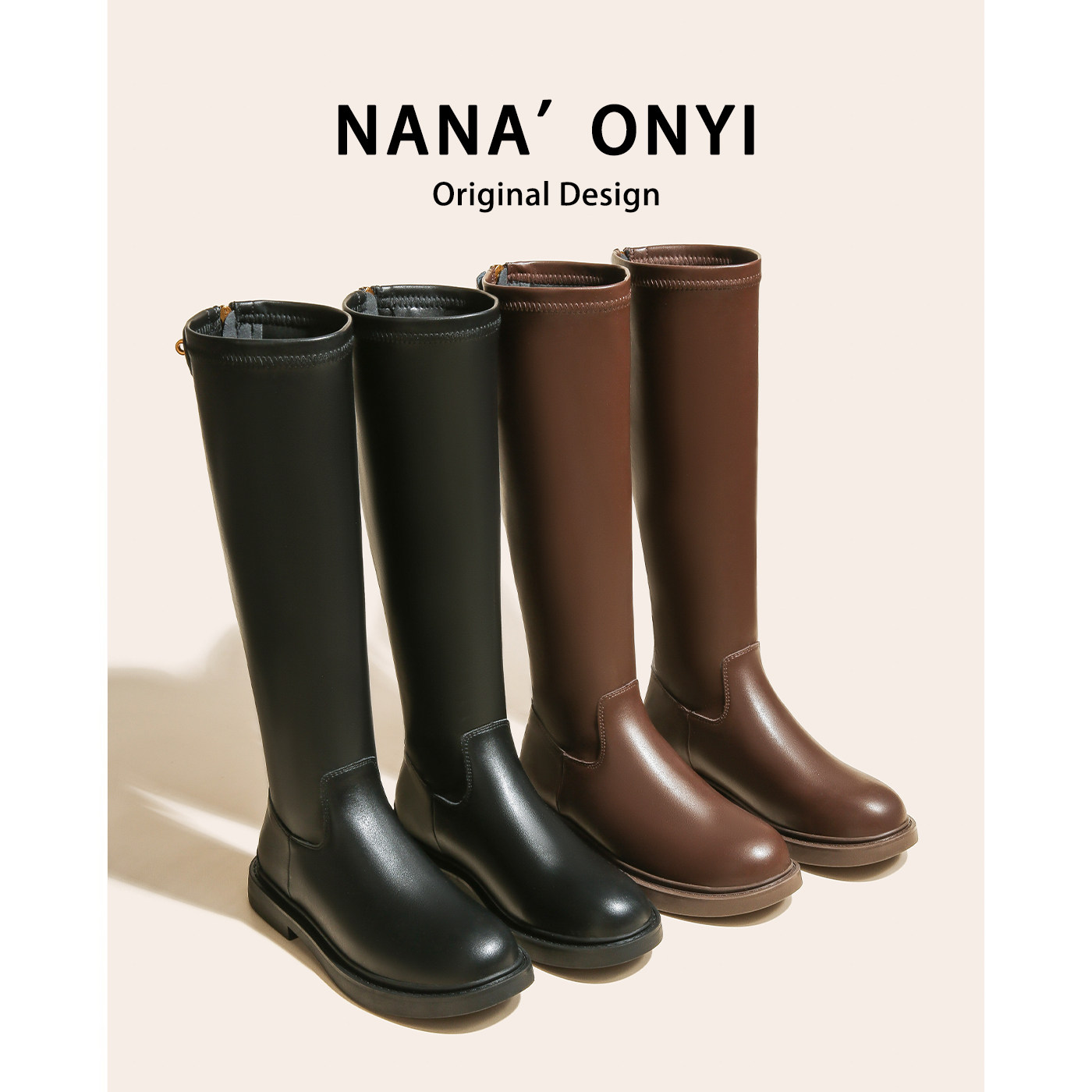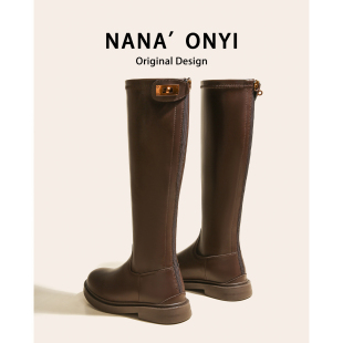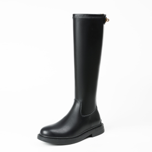 后拉链长筒靴女秋冬2025新款 不过膝厚底瘦瘦高筒靴骑士靴平底长靴