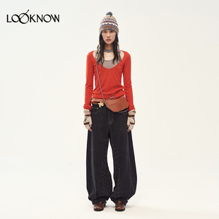 新款 MEDIUM LOOKNOW25年秋季 假两件钩扣羊毛针织上衣女 WELL
