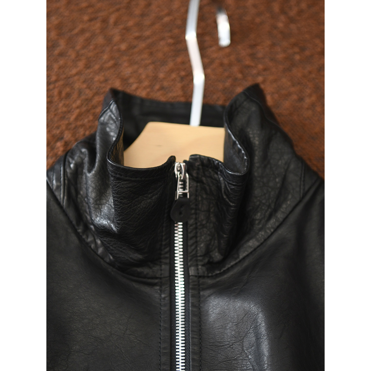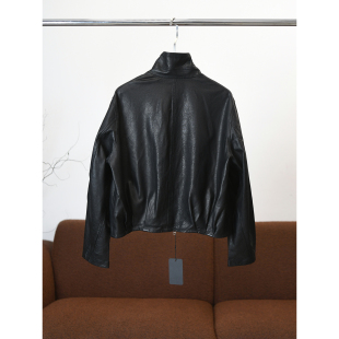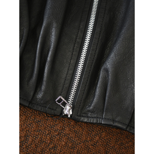 W1395 进口小羊皮复古立领双拉链荔枝纹后中缝皮衣 颖颖家 甜酷风