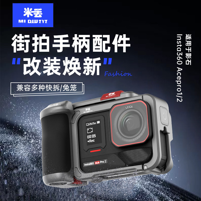 米丢适配影石Insta360ace 配件acepro街拍手柄套件运动相机手持握把配件金属兔笼多功能拓展框 pro2街拍套装