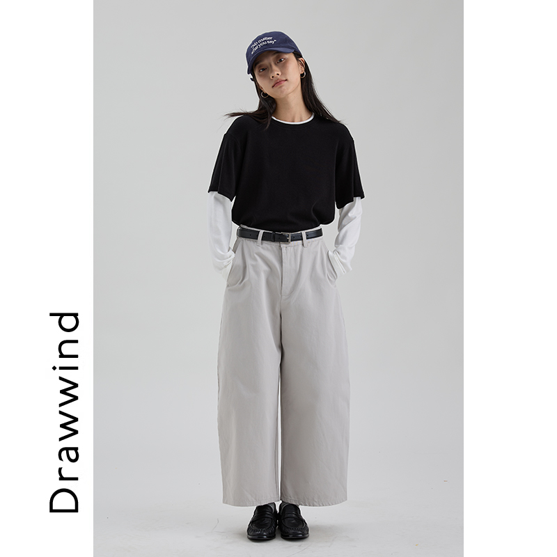 画风drawwind慕斯棉假两件长袖 宽松撞色圆领上衣女秋 T恤2025新款