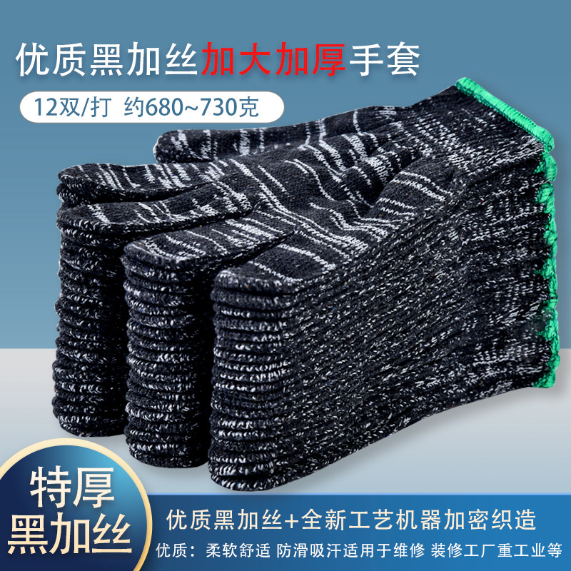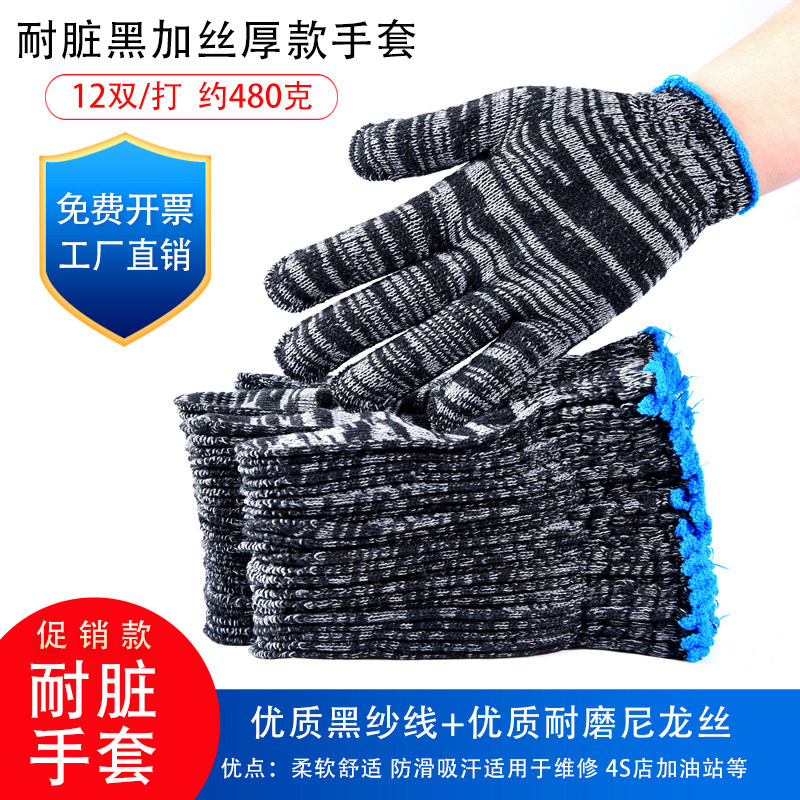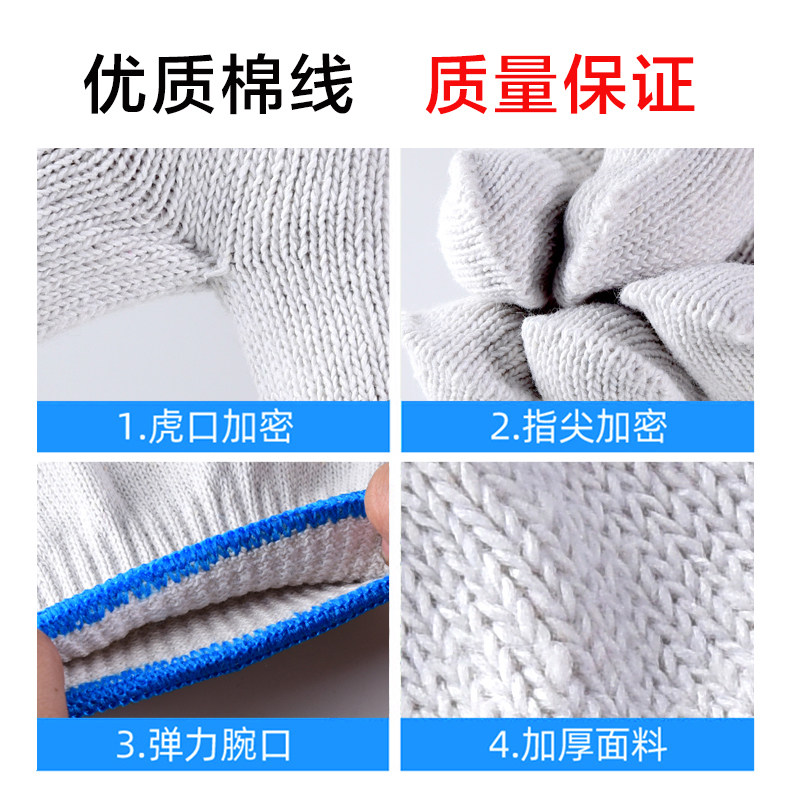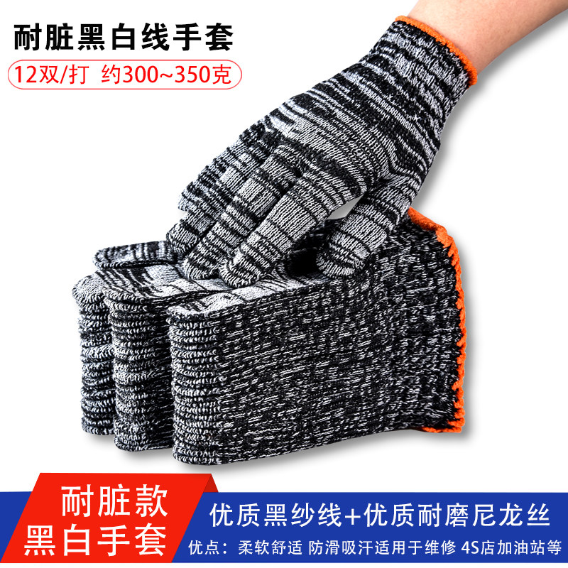 手套劳保棉纱线工作手套白尼龙黑手套耐磨加厚防滑劳动手套男工地