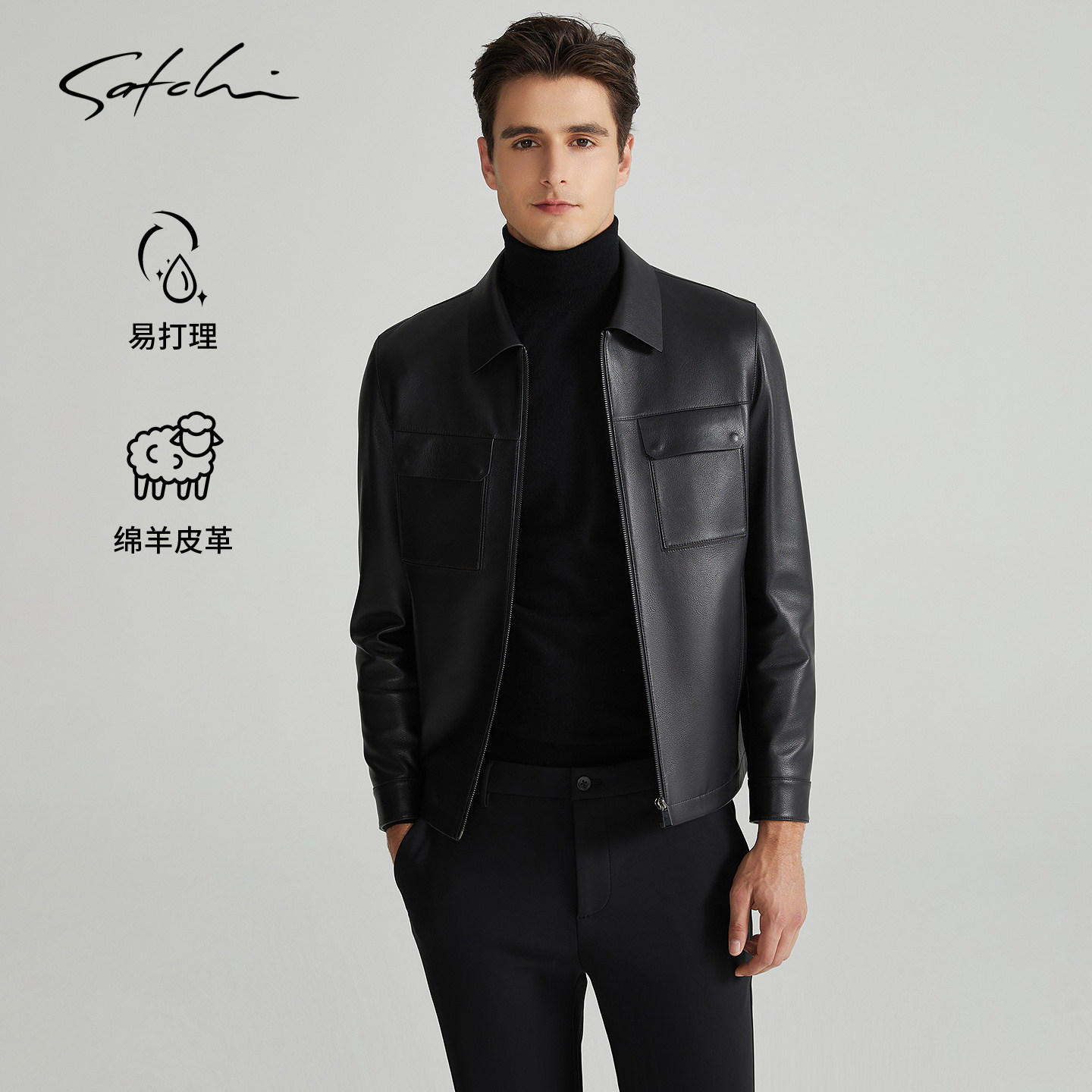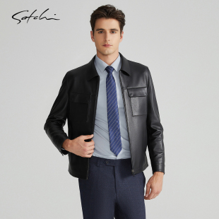 头层羊皮 新款 SATCHI沙驰男装 真皮皮衣春季 商务高端夹克外套 男士